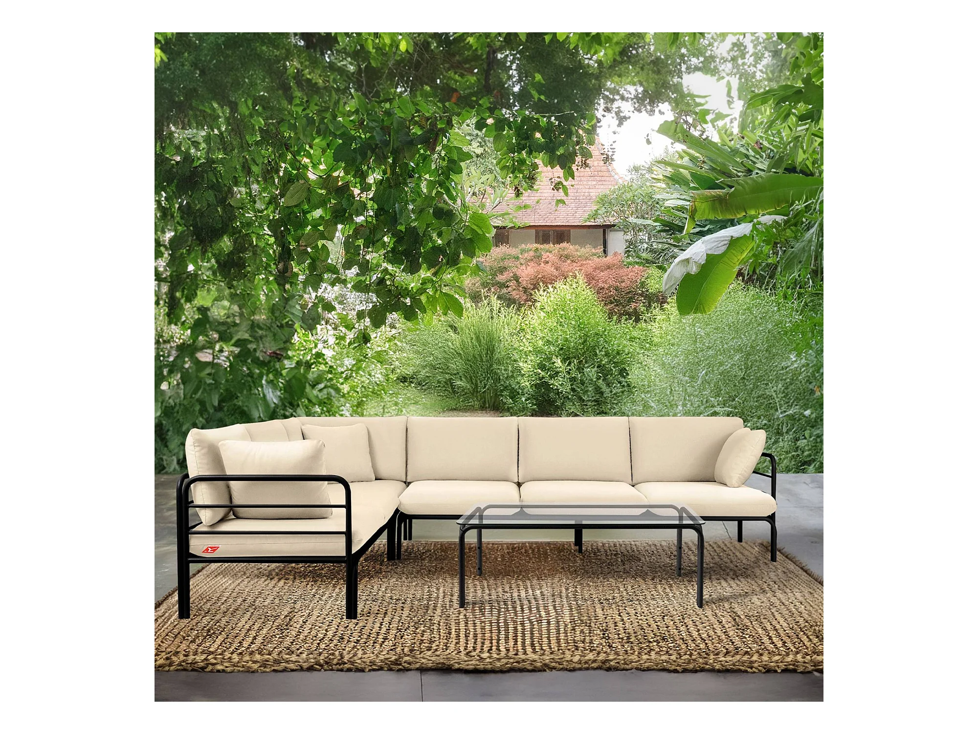 Ensemble d'angle de jardin RAMBE gris et blanc cassé, dimensions 304x80x229 cm, confort maximal