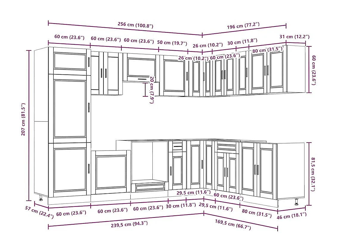 Ensemble d'armoires de cuisine 14 pcs Porto bois d'ingénierie