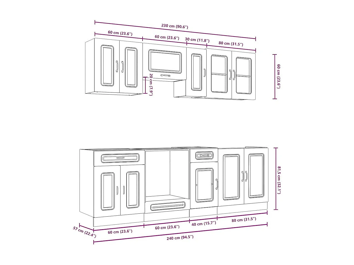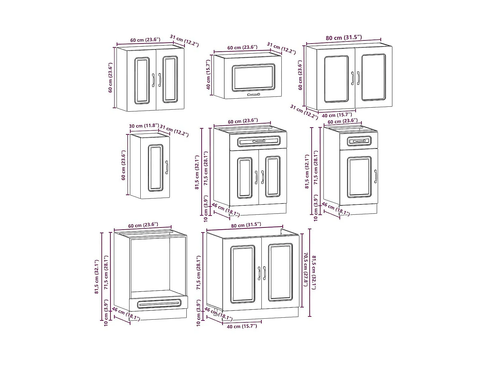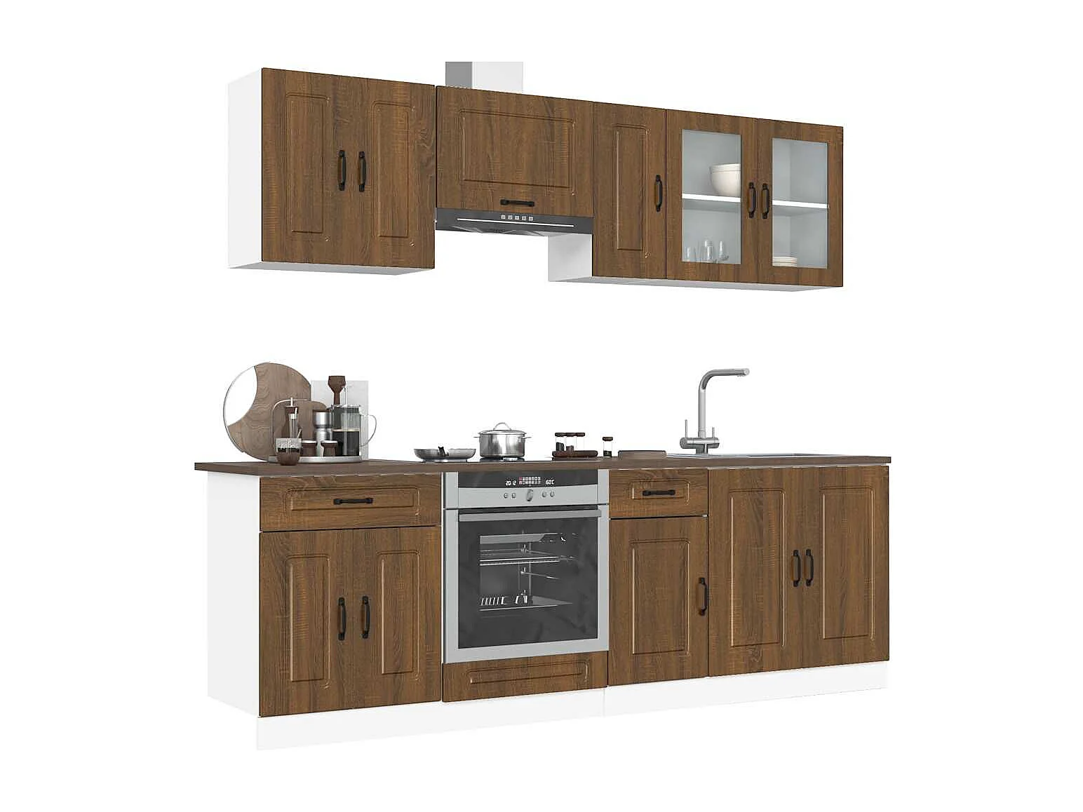 Ensemble de 8 meubles de cuisine en bois d'ingénierie "Kalmar" en chêne brun