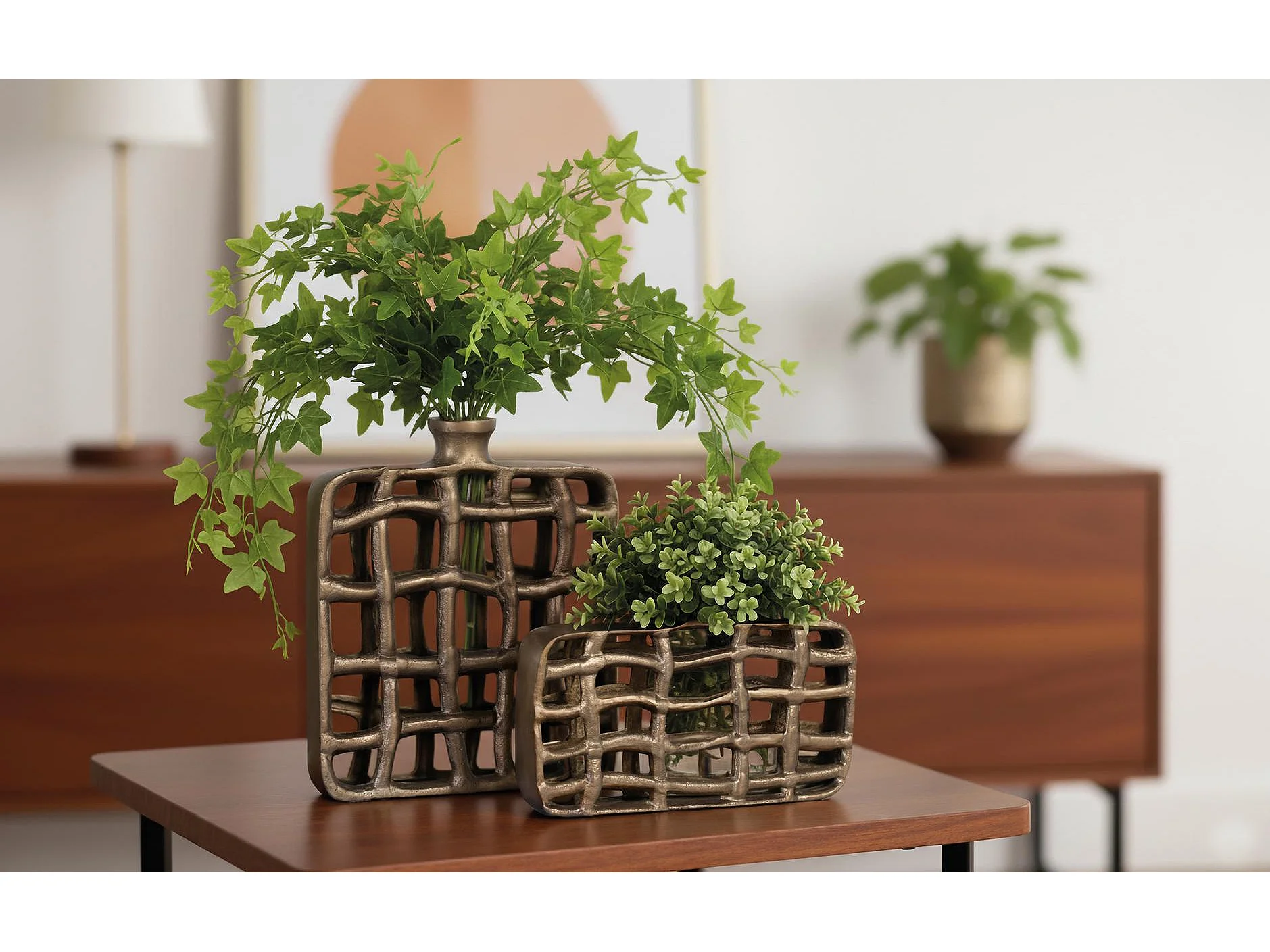 Lot de 2 figurines décoratives en aluminium avec finition bronze