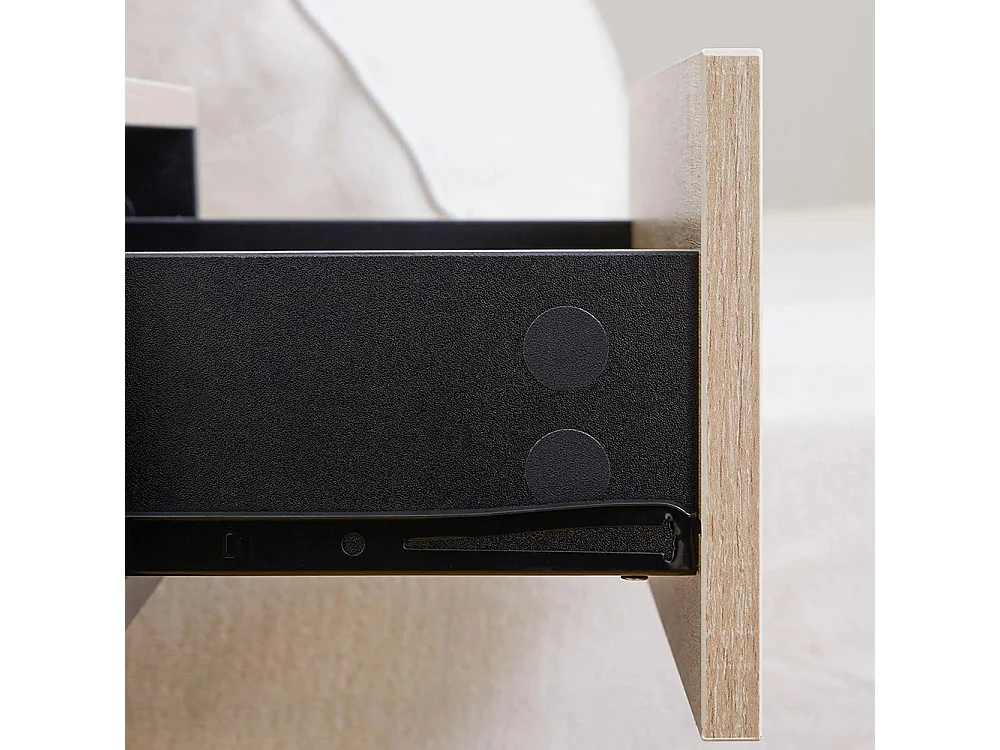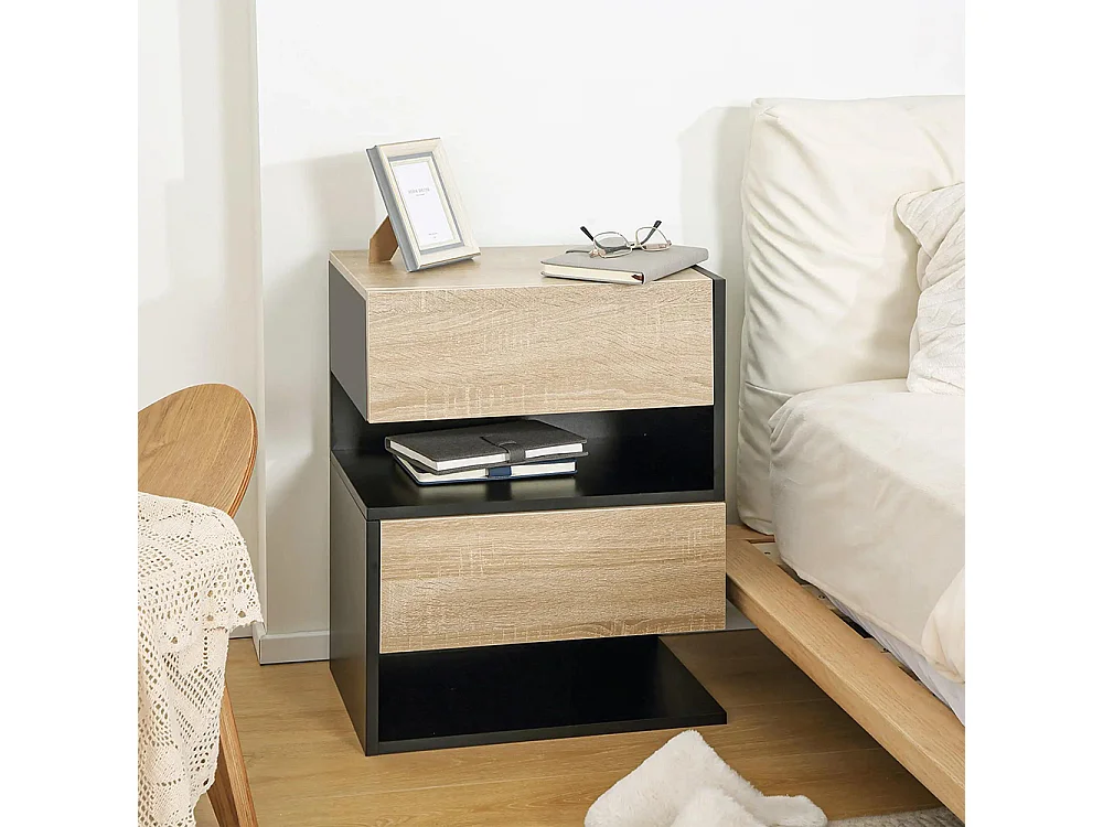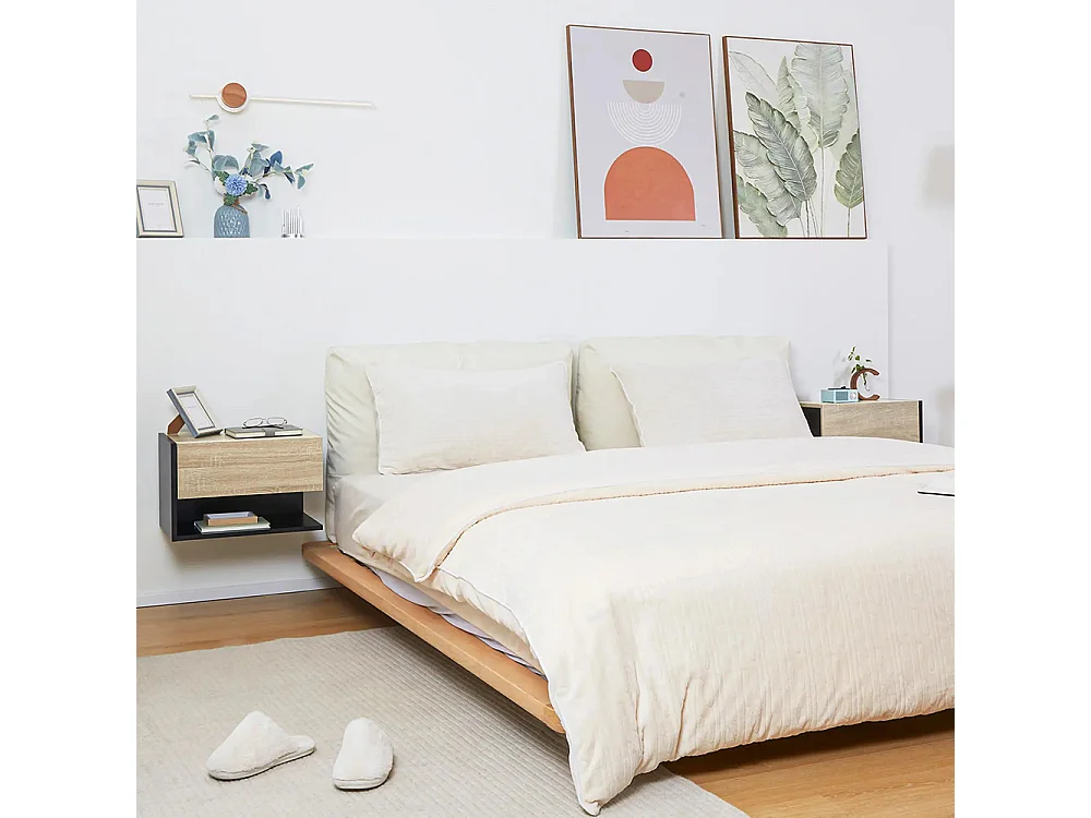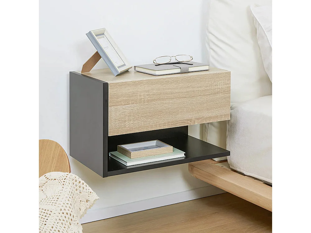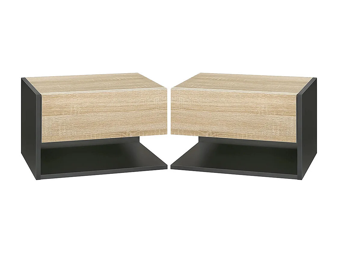Ensemble de 2 tables de chevet murales - Ensemble de 2 tables de chevet - Avec tiroirs et étagères, finition noir et chêne bicolore