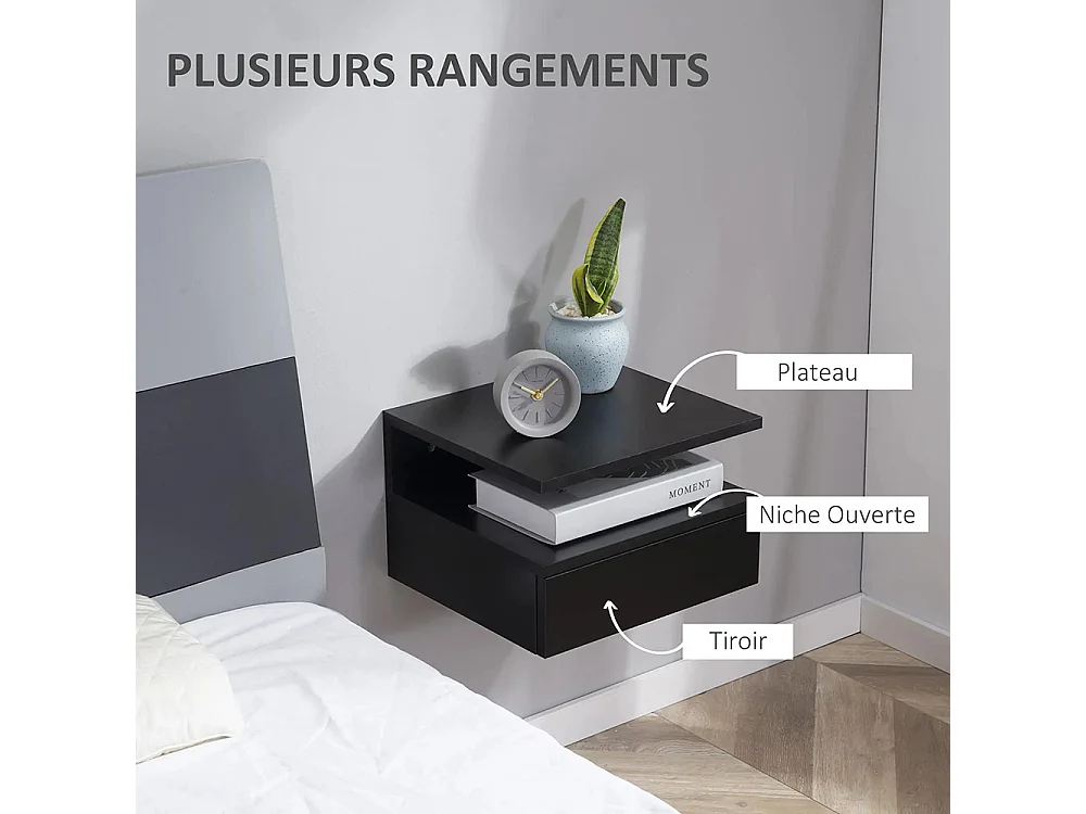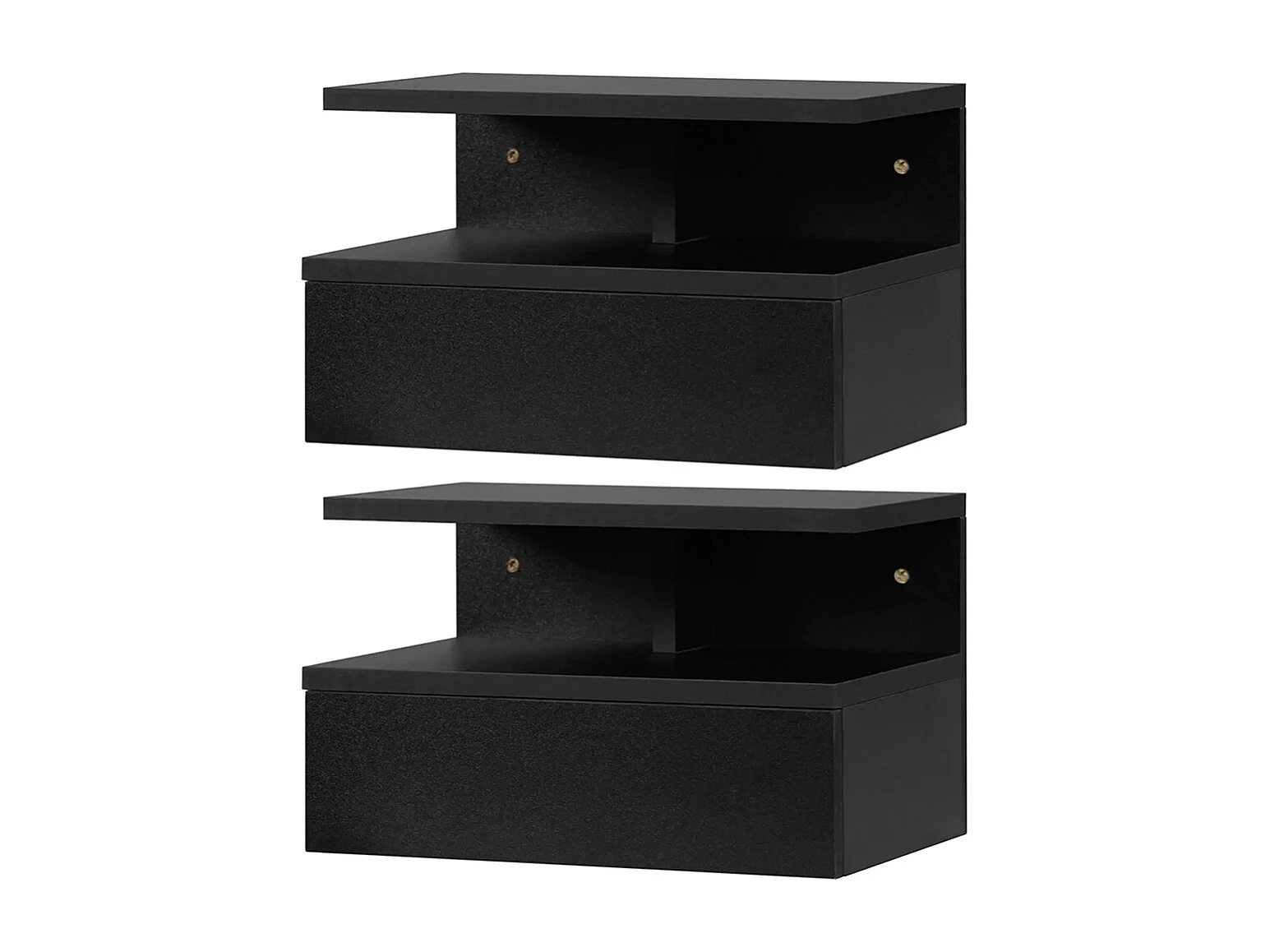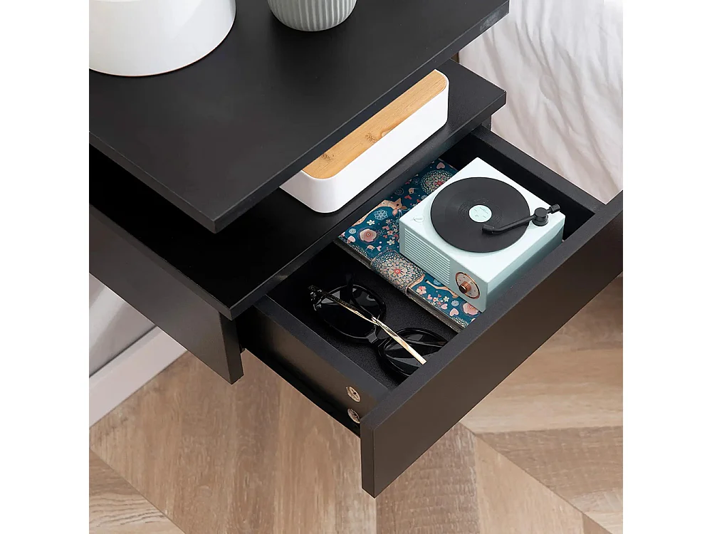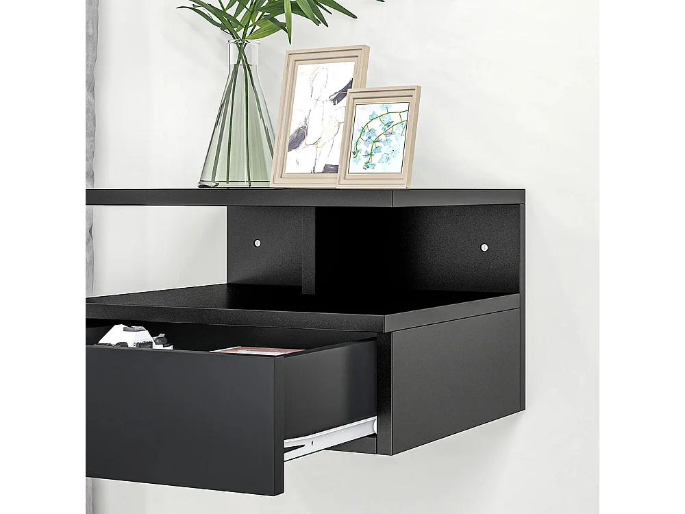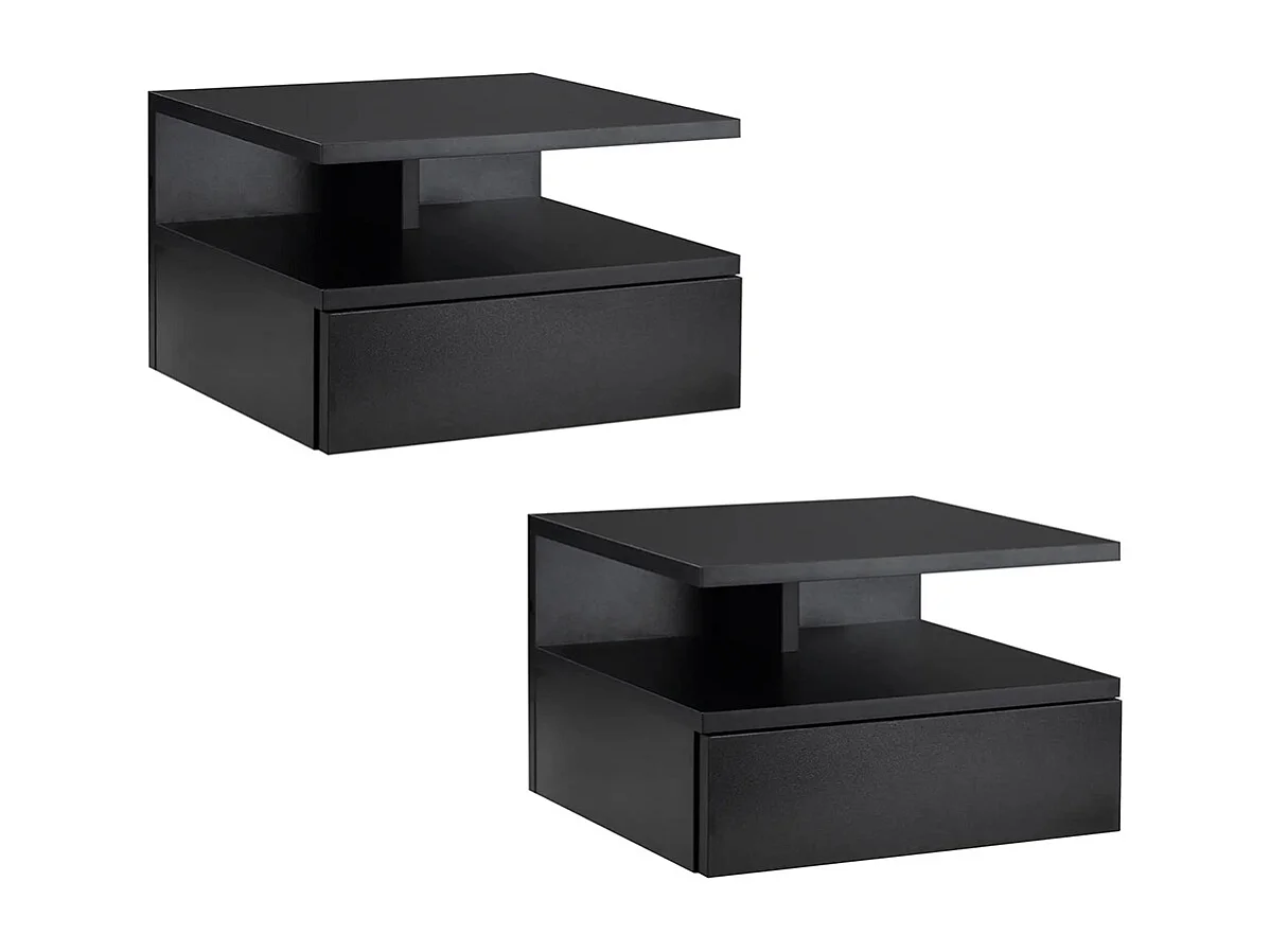 Ensemble de 2 tables de chevet murales - Ensemble de 2 tables de chevet - Tiroirs, niches, plateaux - Panneau en aggloméré noir