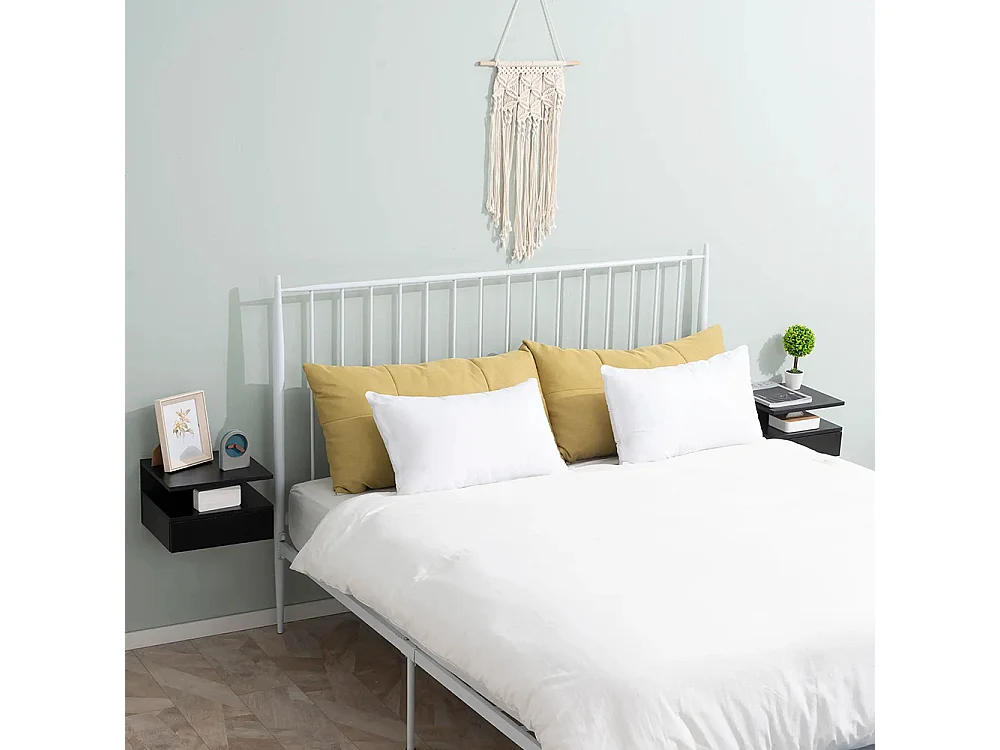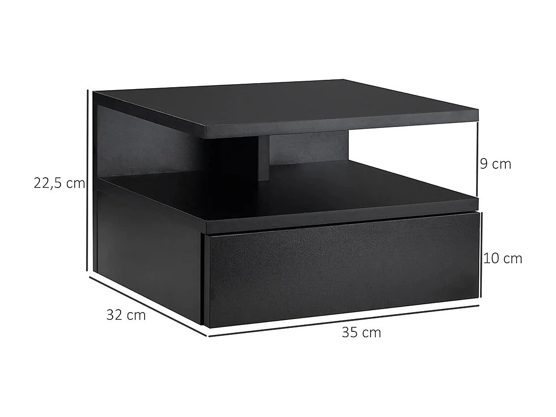Ensemble de 2 tables de chevet murales avec tiroirs et plateau en bois, dimensions : 37 L x 32 l x 21 H cm, couleur noire.