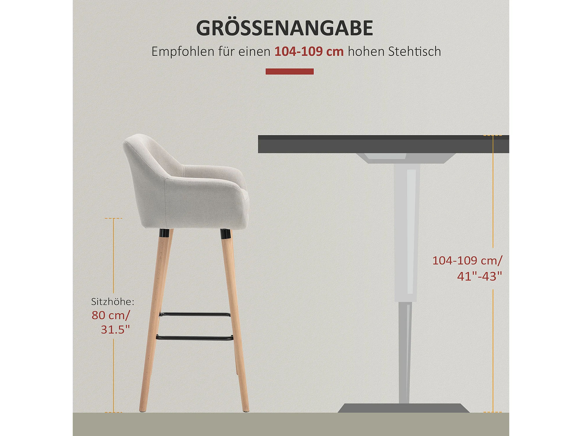Ensemble de 2 tabourets de bar confortables en lin avec coussins d'assise et repose-pieds, pieds en hêtre, beige