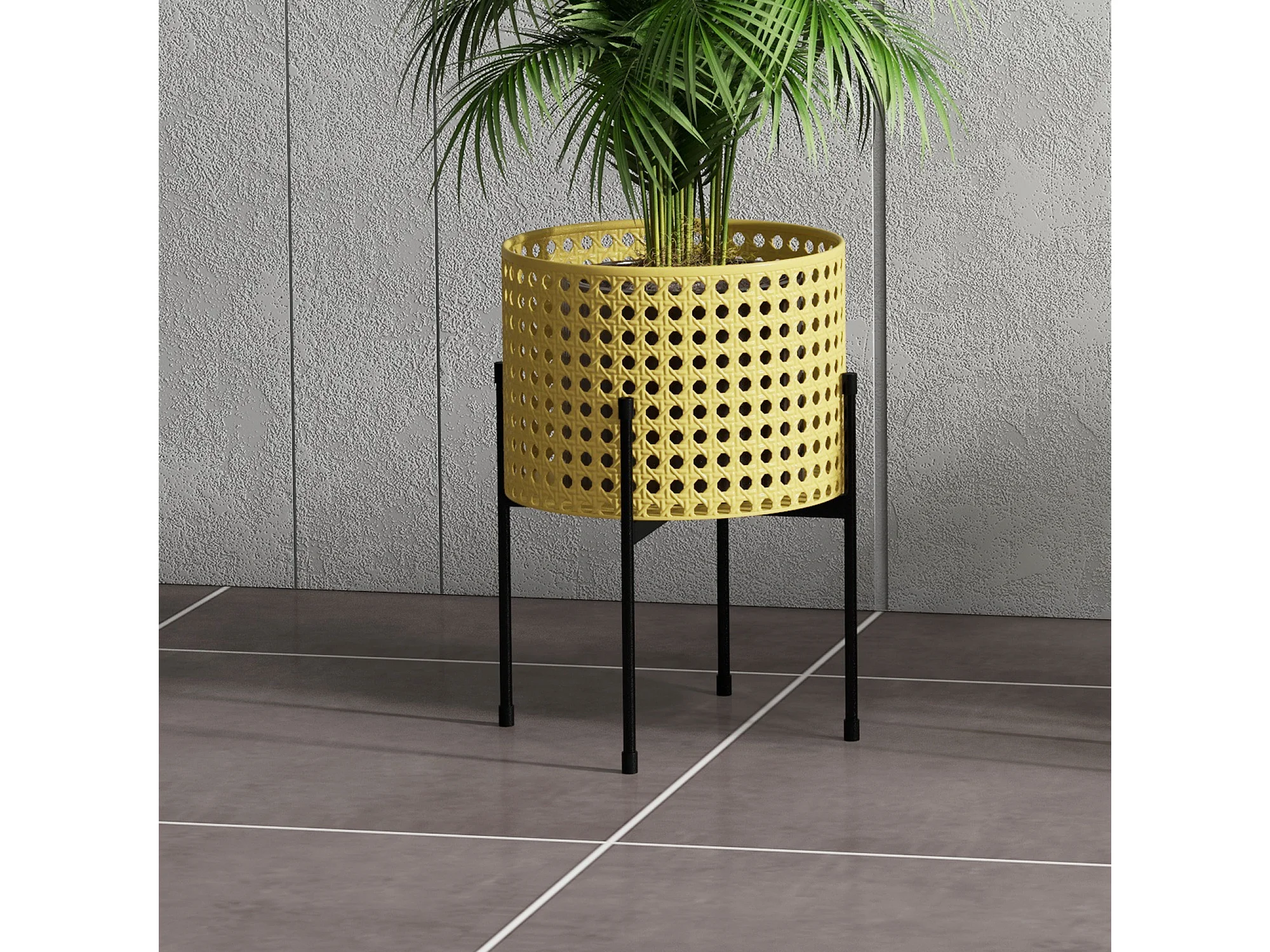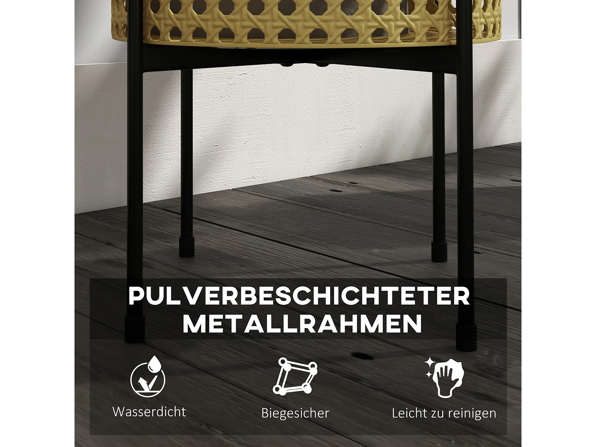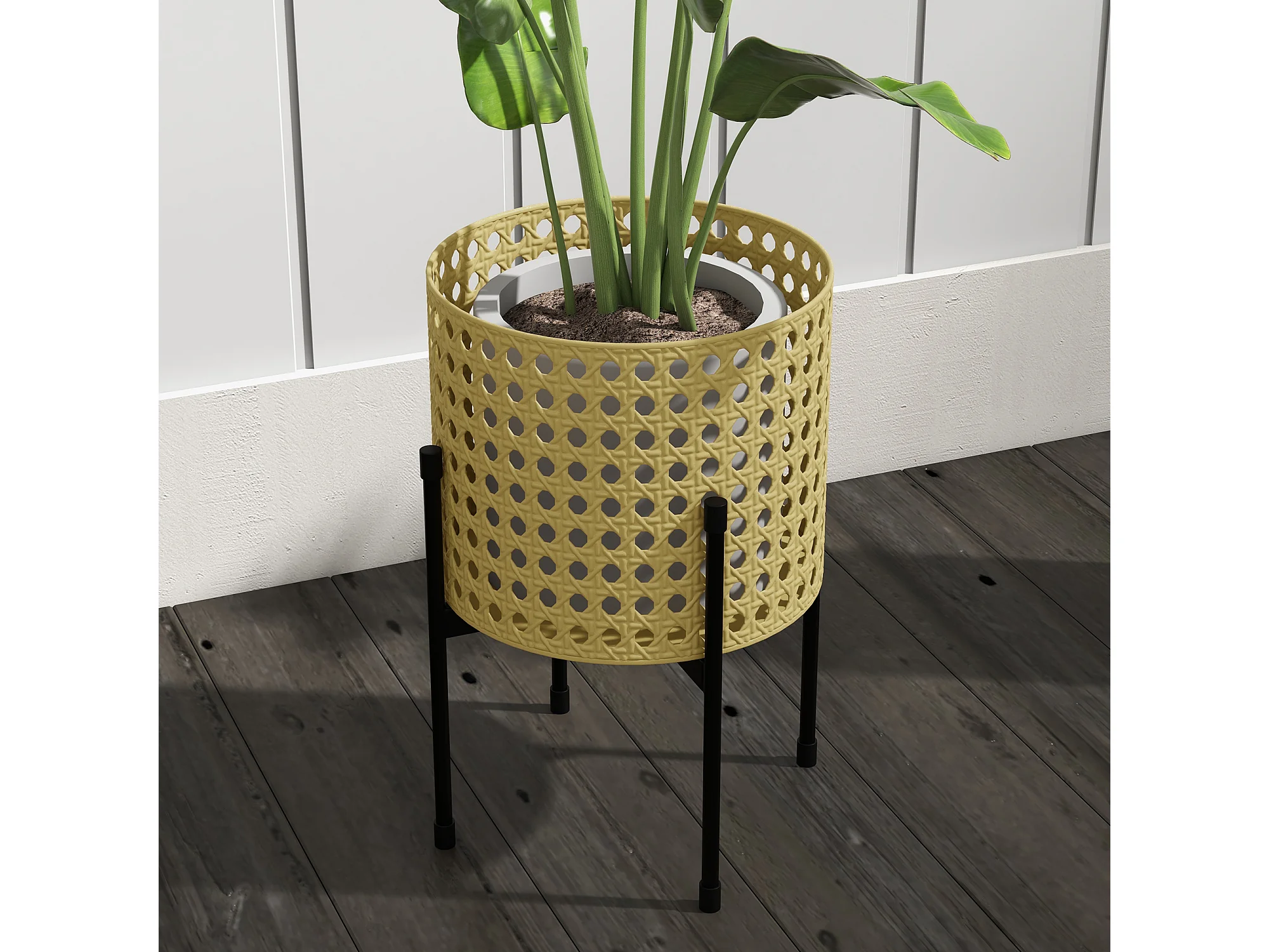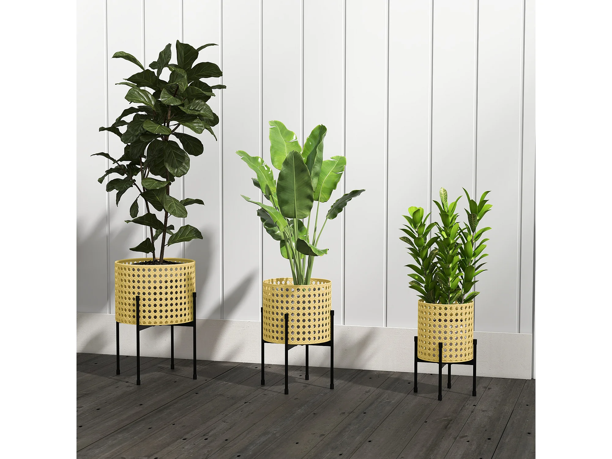 Ensemble de 3 supports à plantes en métal doré, design rotin, pour intérieur & extérieur (30x30x40 cm)