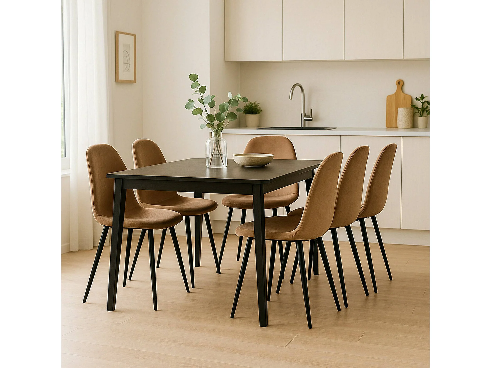 Ensemble de 6 chaises Dacampor, Fauteuil recouvert de velours, Chaise de salle à manger rembourrée, Siège de réunion, 45x56h87 cm, Sable