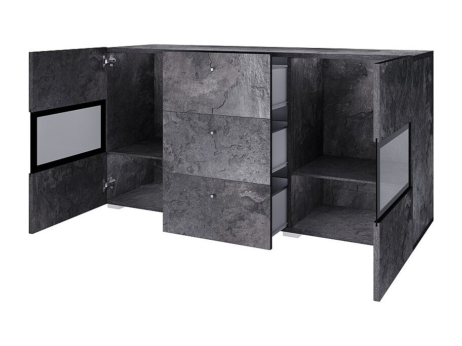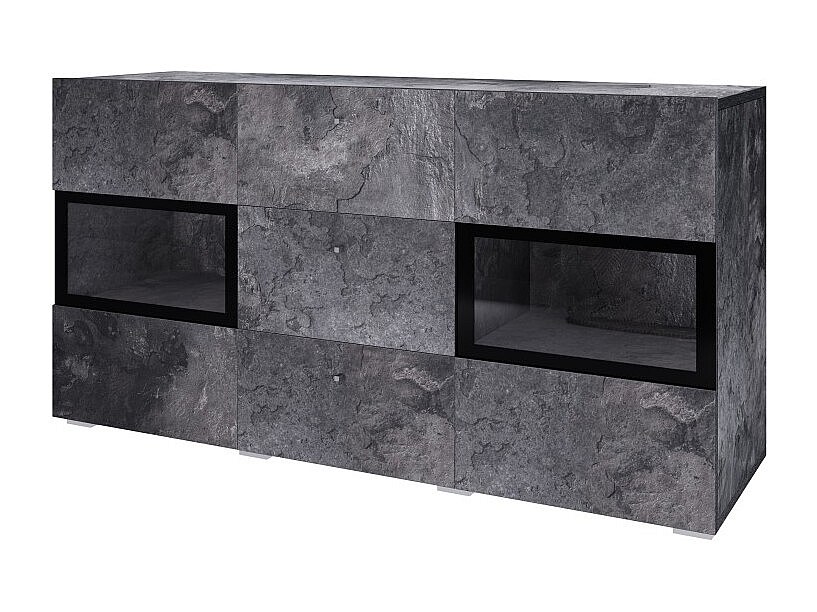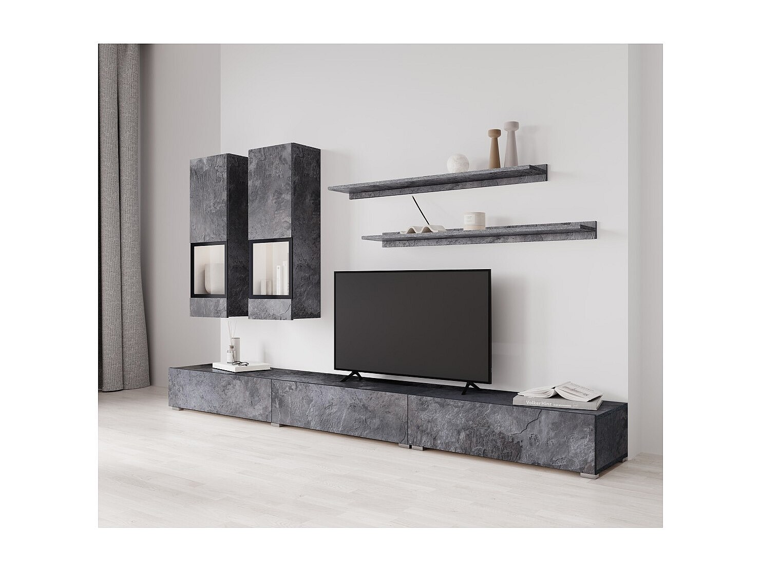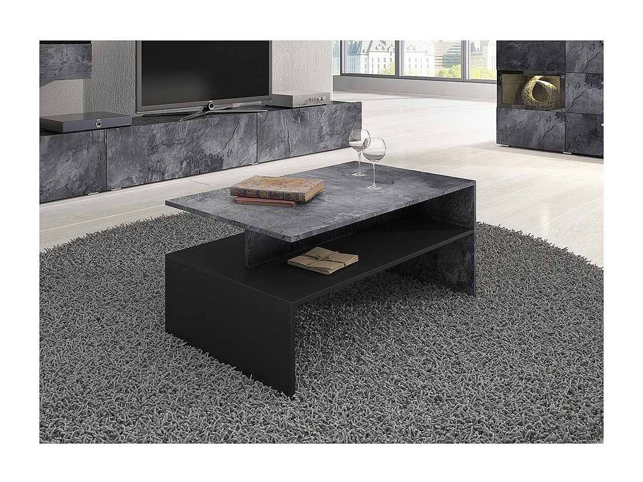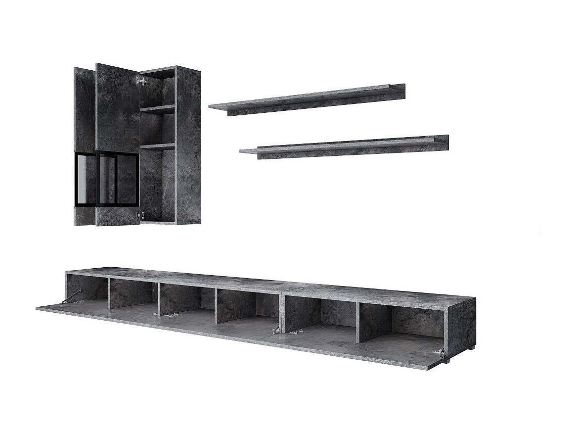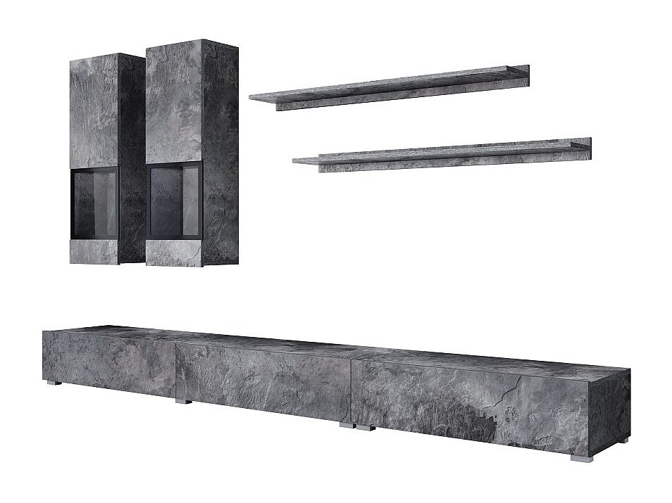 Ensemble salon complet RAMOS – Effet ardoise – 7 meubles avec LED multicolore intégrée