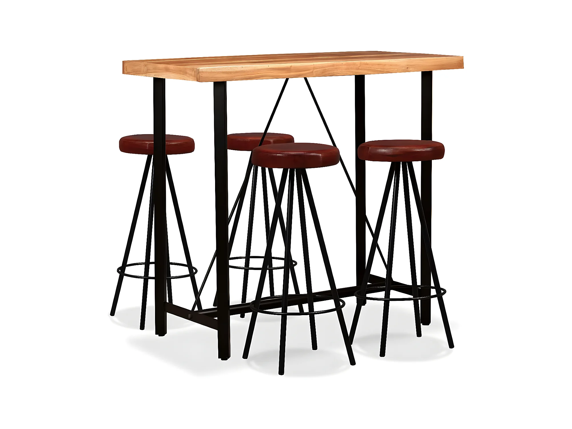 Ensemble de bar 5 pcs Bois d'acacia massif et cuir véritable LCS6766