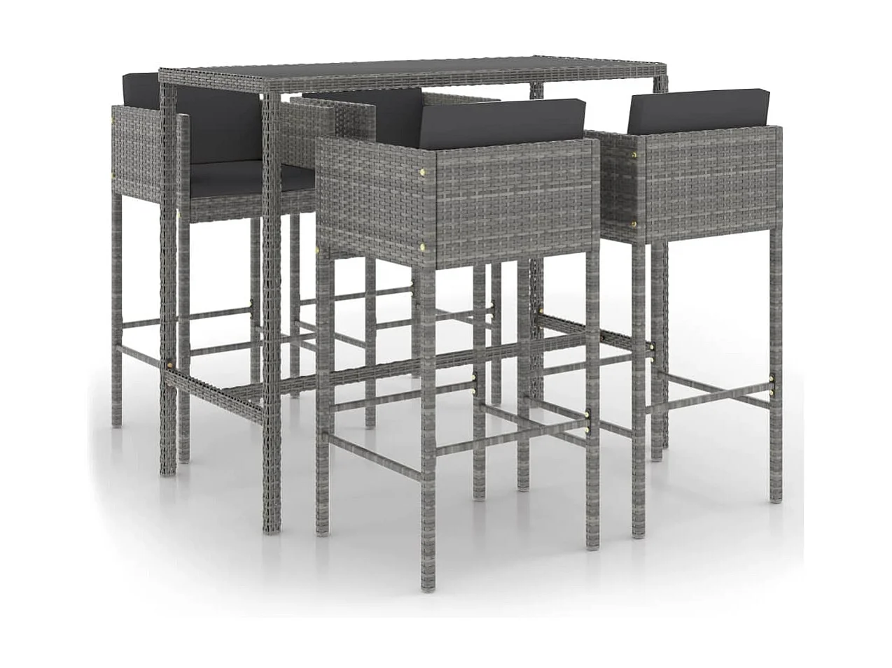 Ensemble de bar de jardin 5 pcs et coussins Résine tressée Gris 17