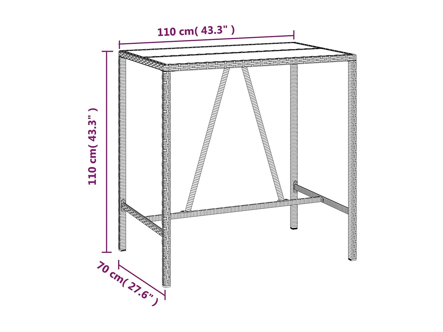 Ensemble de bar de jardin 7 pièces avec coussins noir poly rotin