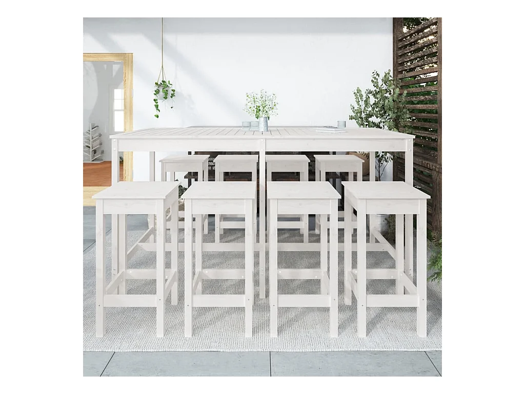 Ensemble de bar de jardin 9 pièces blanc bois de pin massif