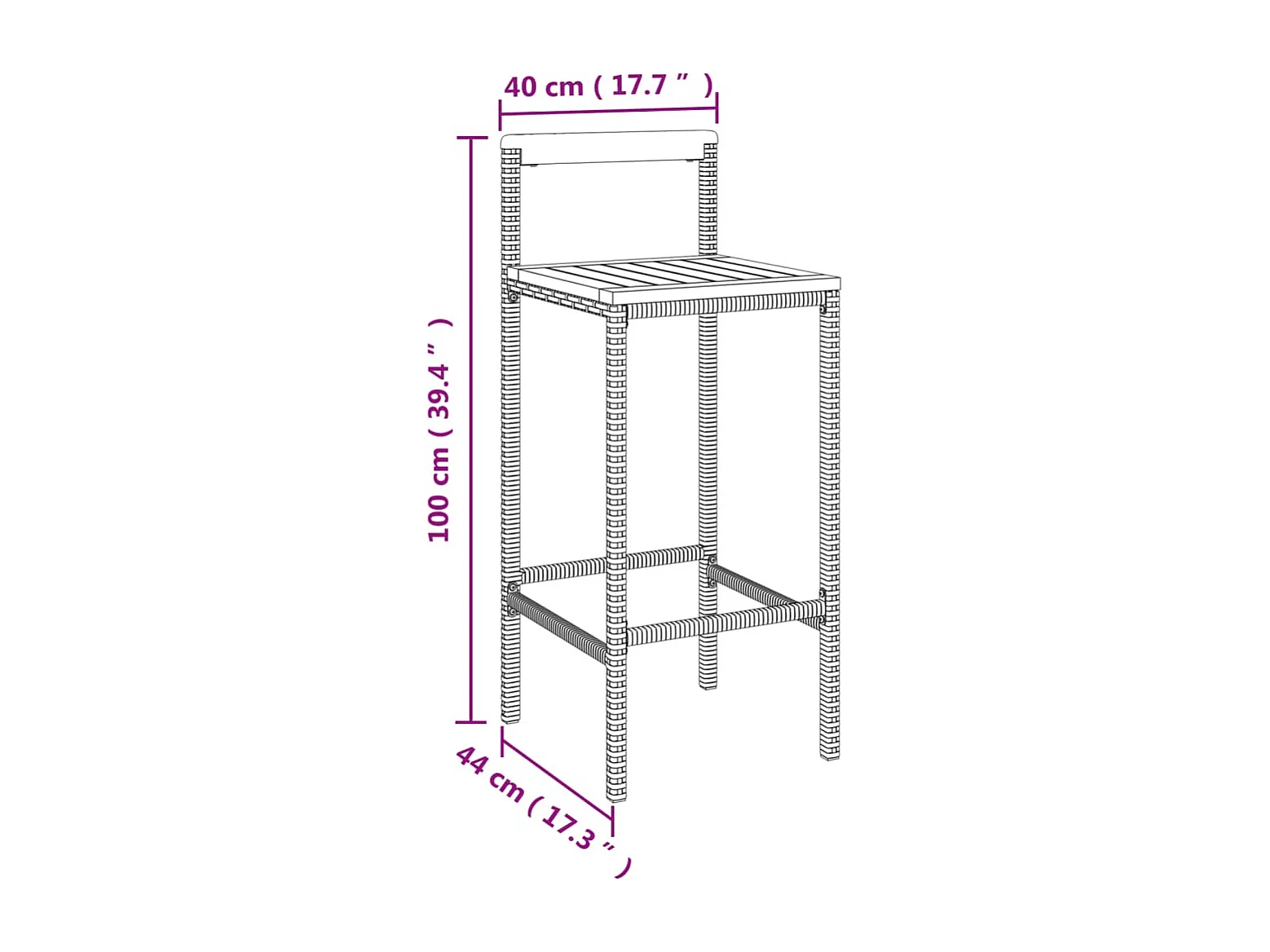 Ensemble de bar jardin 11 pièces noir poly rotin/bois massif acacia