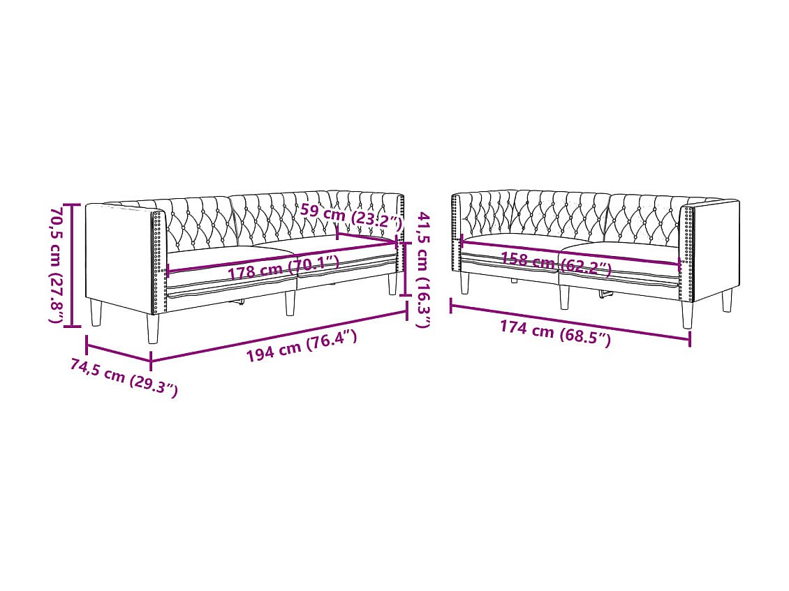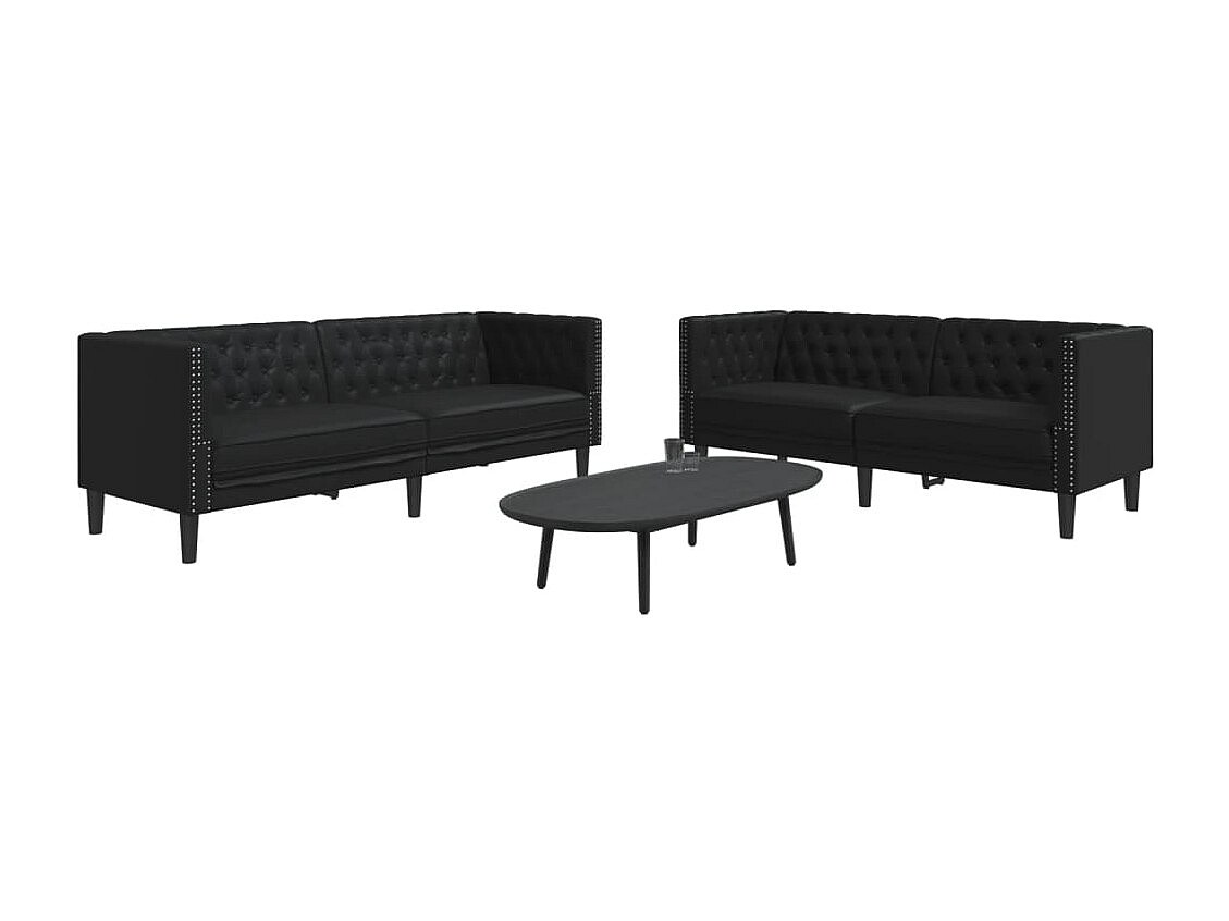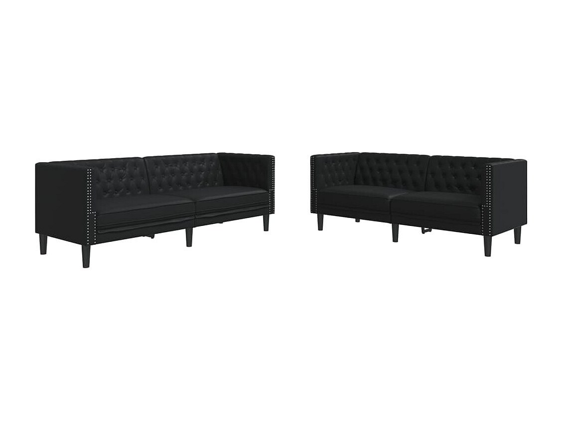 Ensemble de canapé Chesterfield 2 pcs noir similicuir