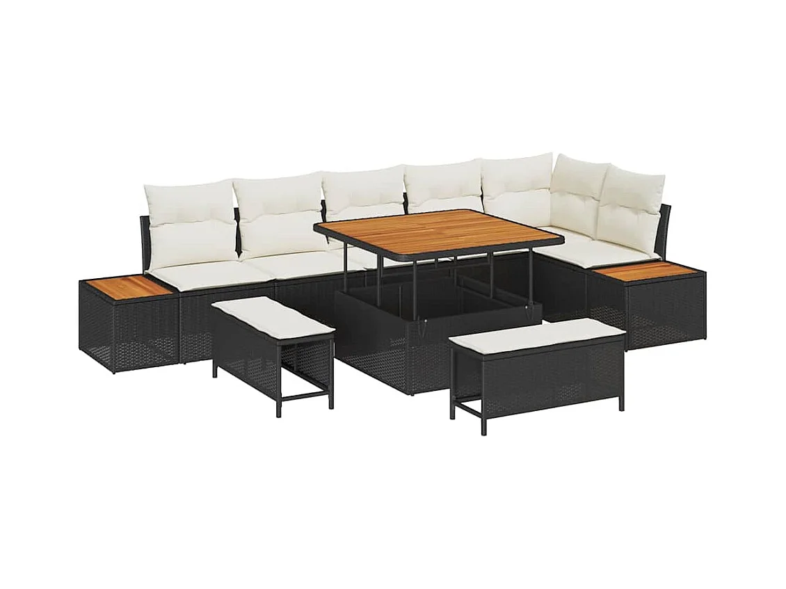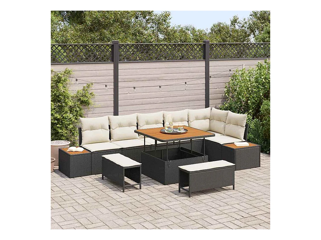Ensemble de canapé de jardin avec coussin 9 pcs Noir Poly rotin