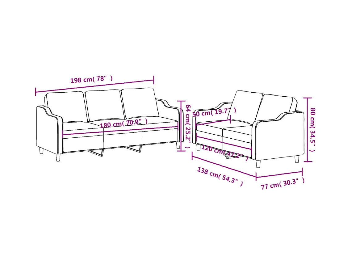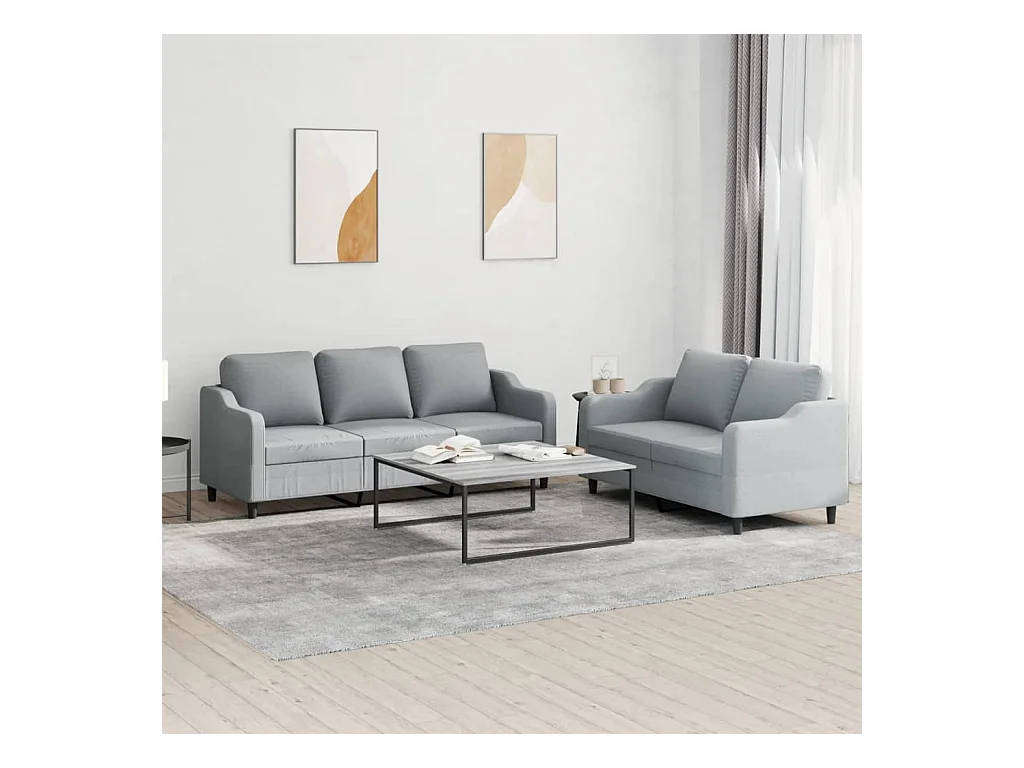 Ensemble de canapés 2 pcs avec coussins Gris clair Tissu