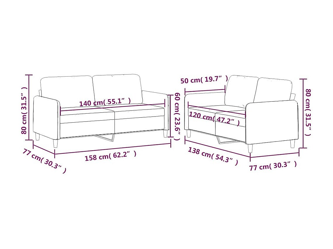 Ensemble de canapés 2 pcs avec coussins Gris clair Tissu