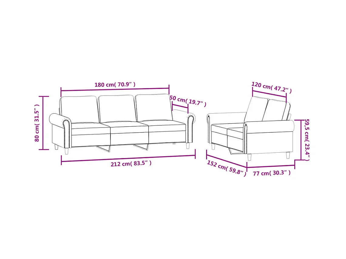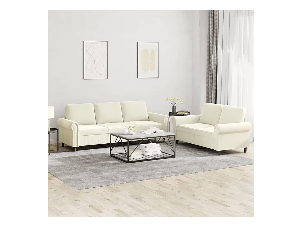 Ensemble de canapés 2 pièces avec coussins Crème Velours