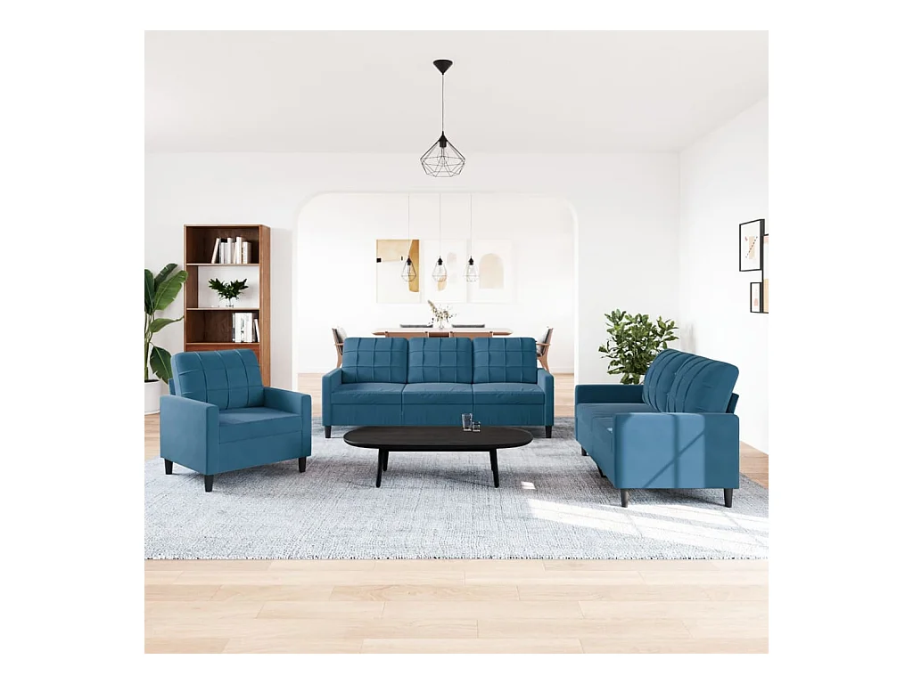 Ensemble de canapés 3 pcs avec coussins Bleu Velours