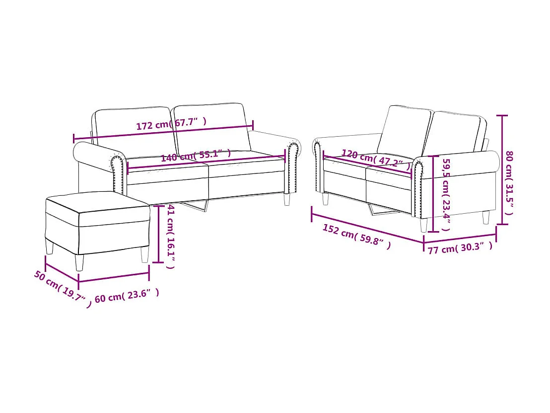 Ensemble de canapés 3 pcs avec coussins Cappuccino Similicuir