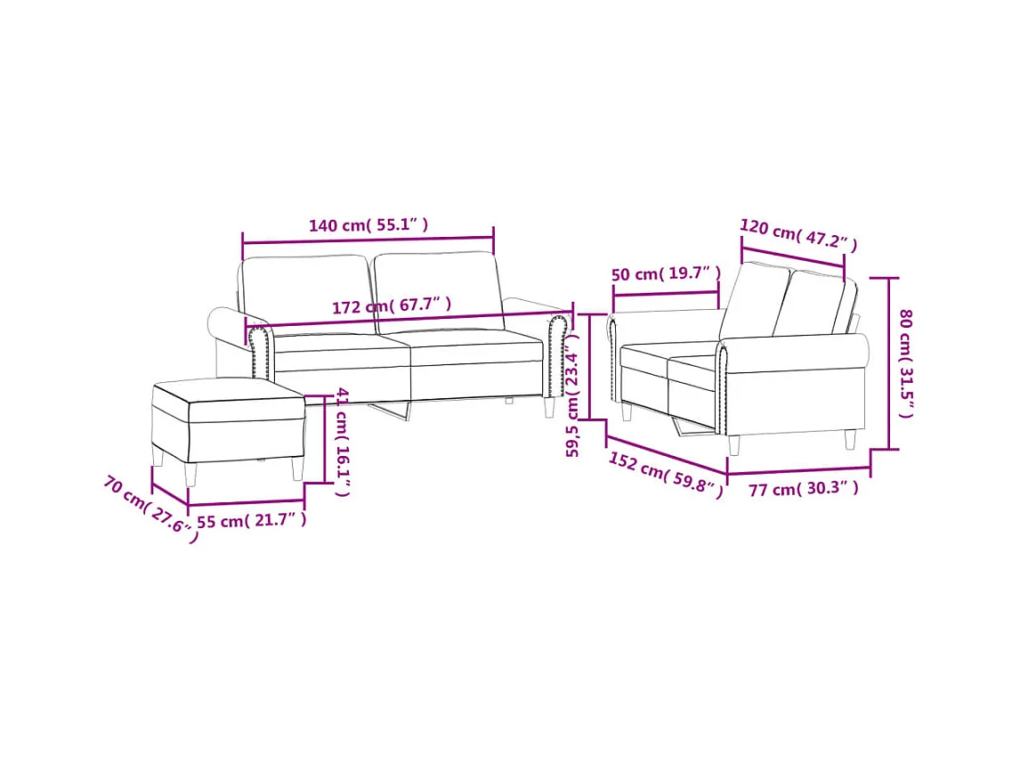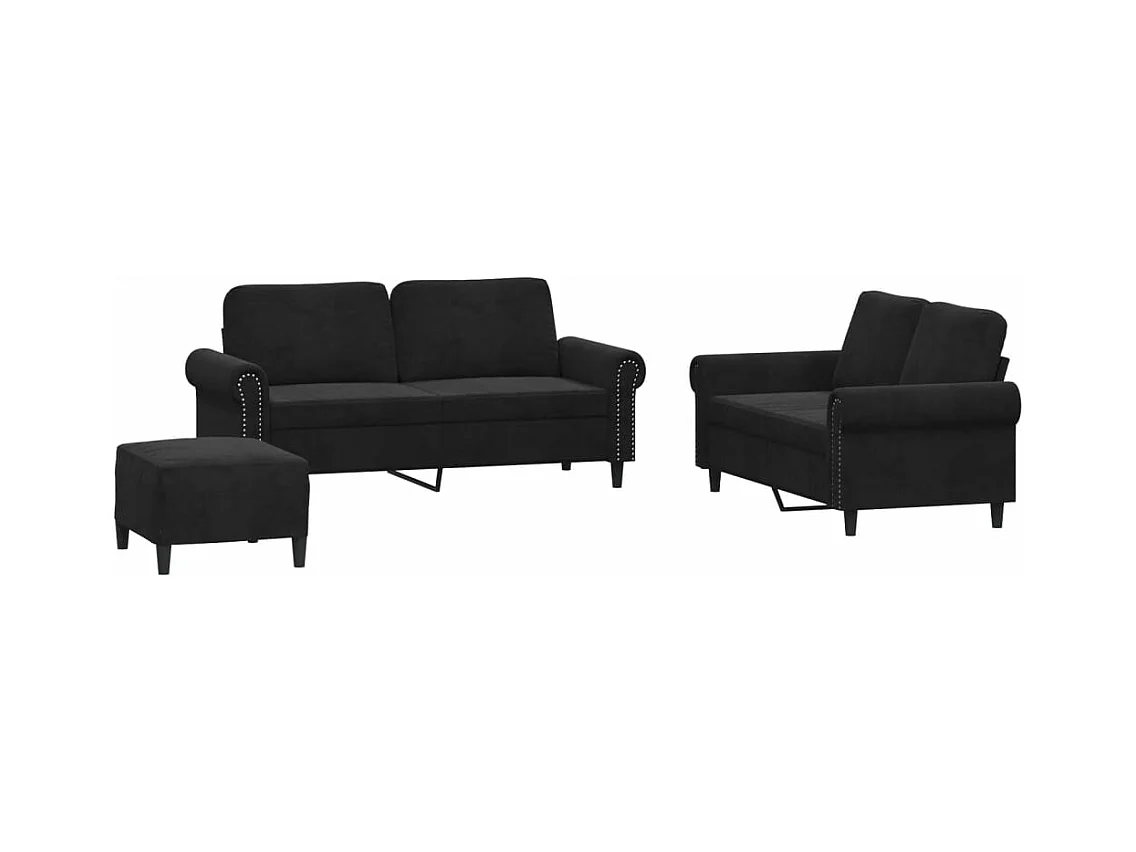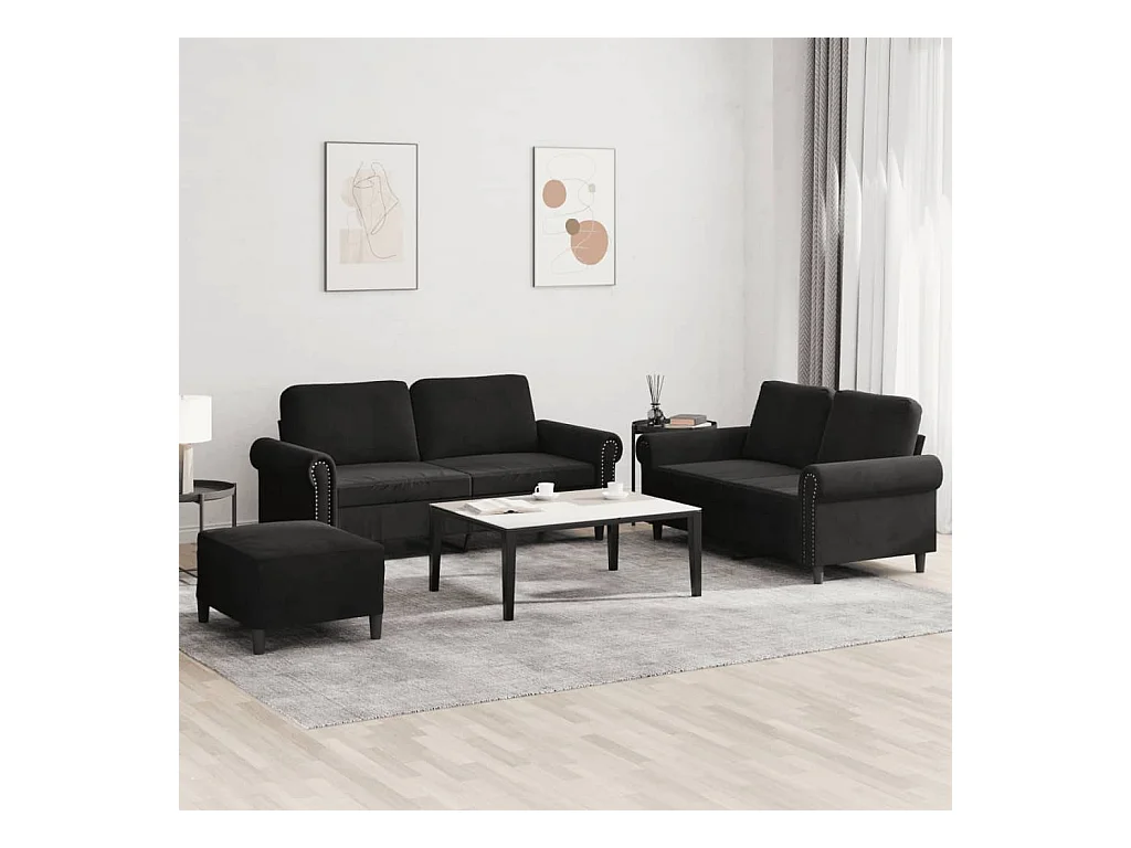 Ensemble de canapés 3 pcs avec coussins Noir Velours