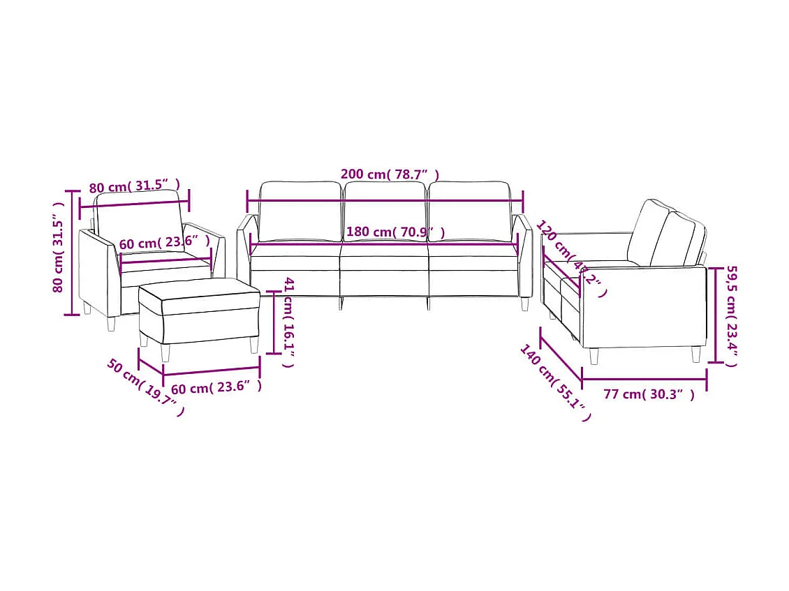 Ensemble de canapés 4 pcs avec coussins Crème Similicuir