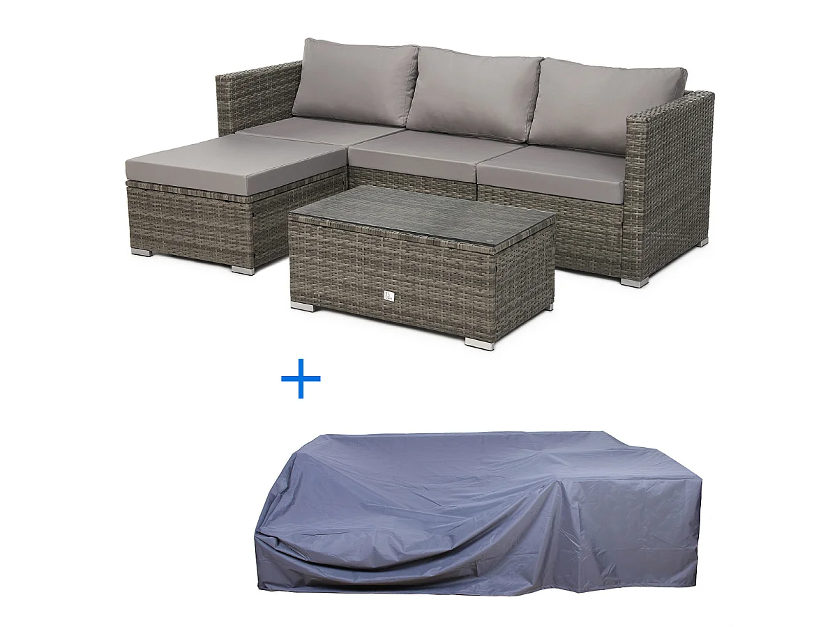 Ensemble de canapés en rotin synthétique QUEENS en gris avec housse
