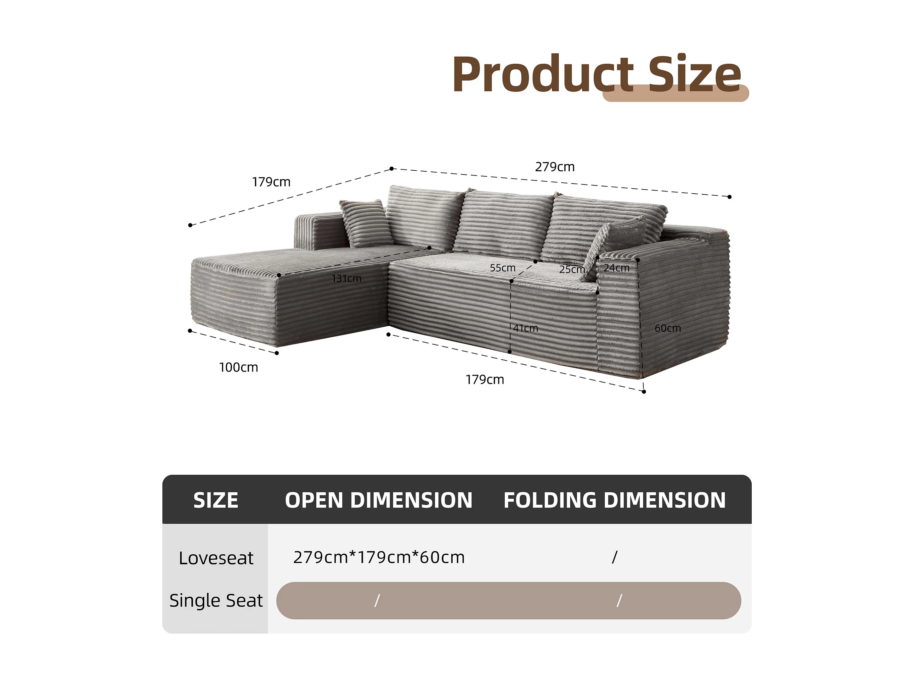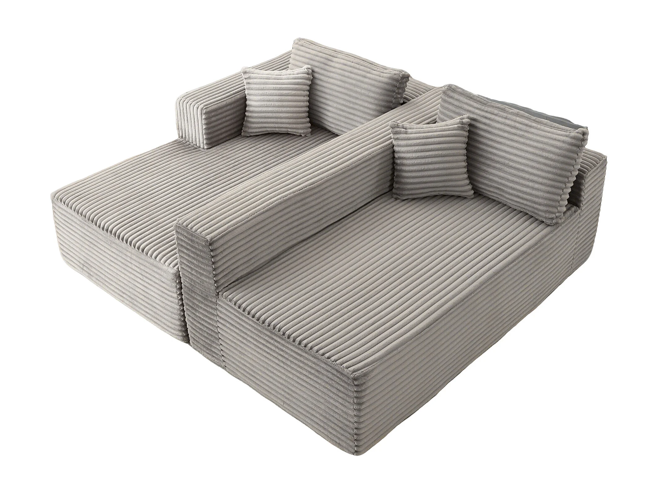 Ensemble de canapés modulaires en velours côtelé, ensemble de canapés en L sur pied, prêt à assembler, adapté aux salons, gris