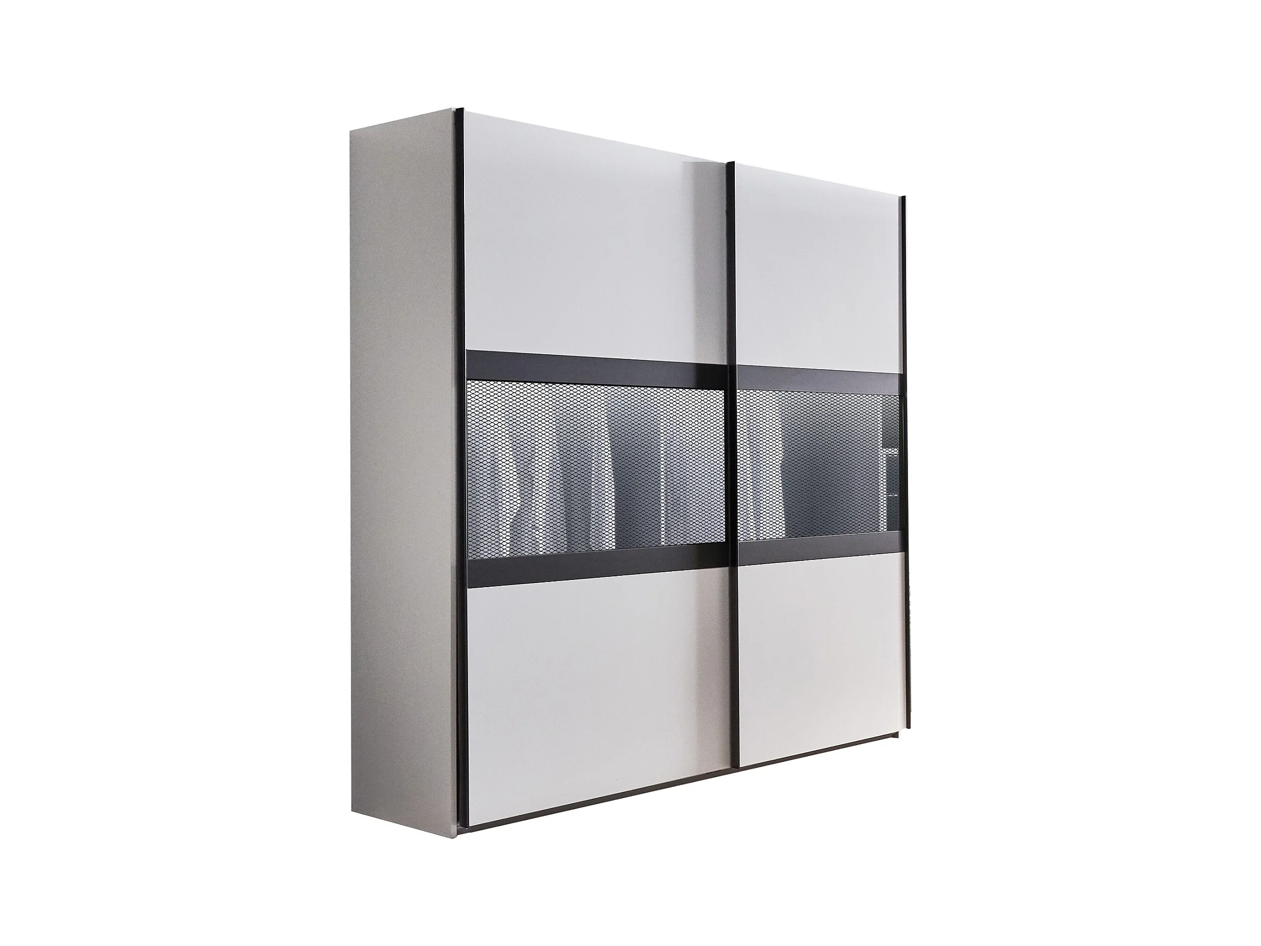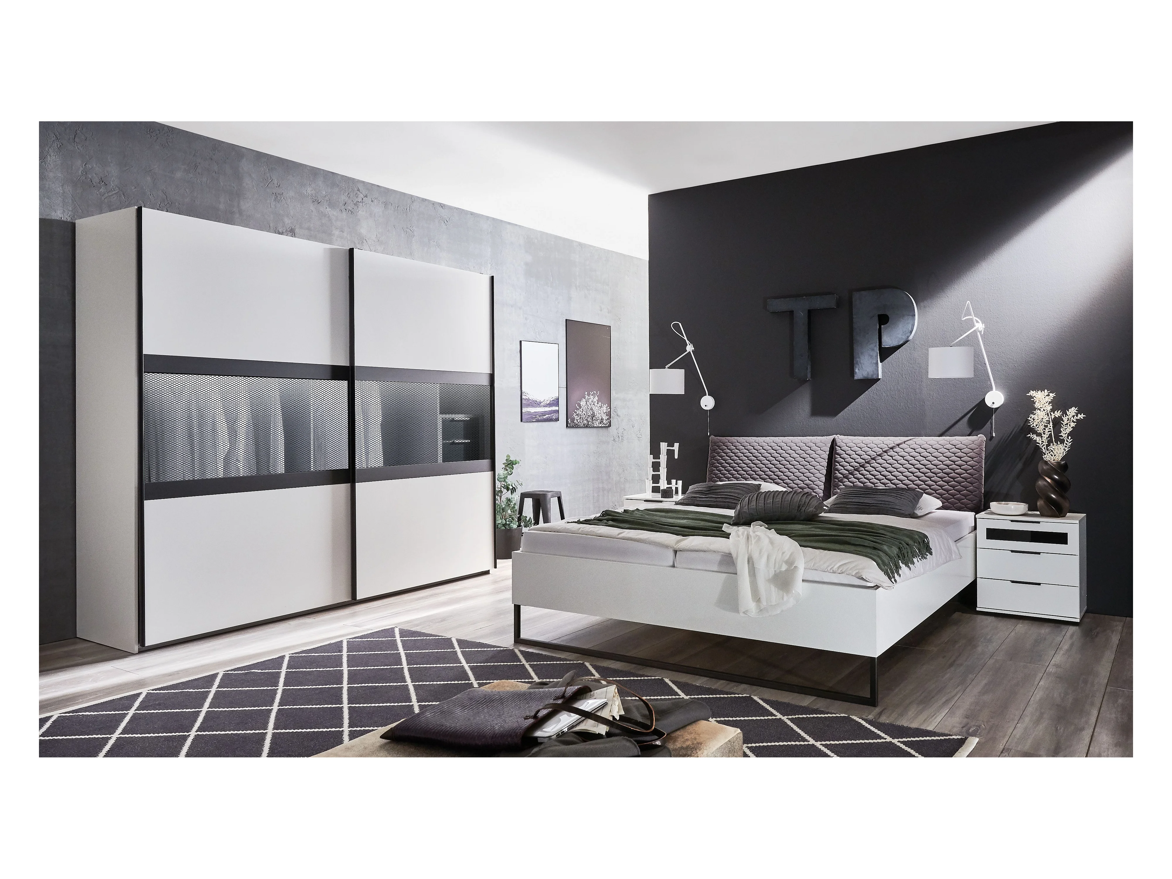 Ensemble de chambre à coucher ( armoire + lit + 2 chevets ) coloris Blanc, rechampis graphite