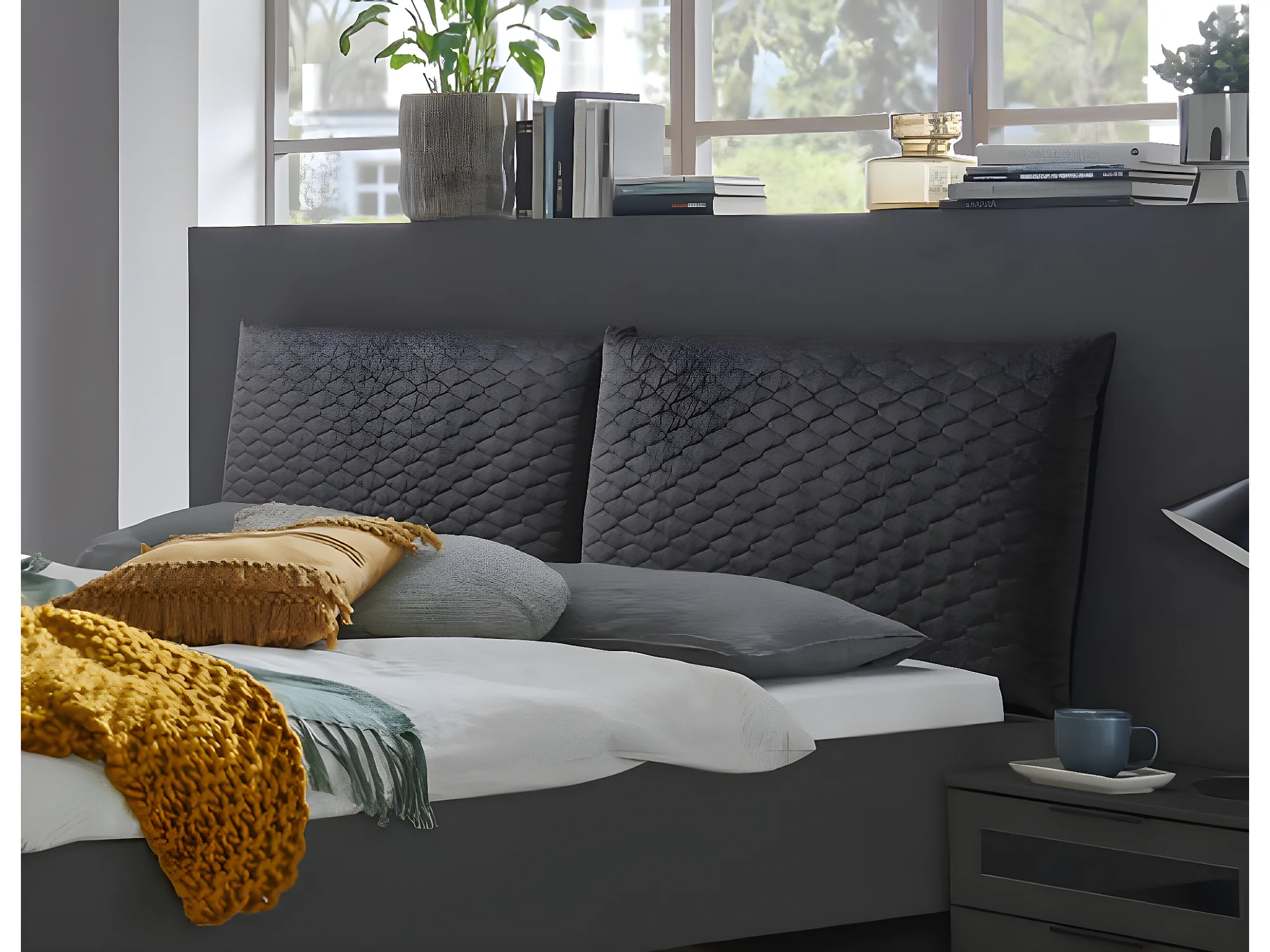Ensemble de chambre à coucher ( armoire + lit + 2 chevets ) coloris graphite, rechampis graphite