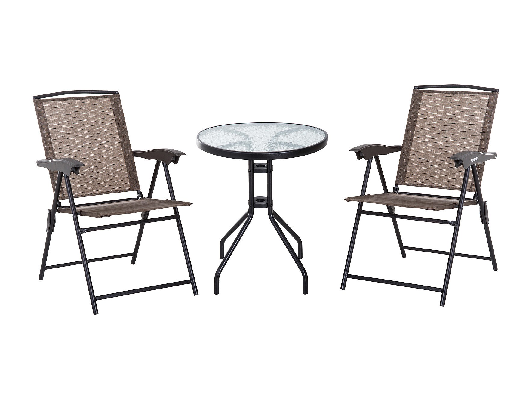 Ensemble de jardin 3 pièces 2 chaises inclinables multi-positions pliables + table ronde verre trempé métal époxy textilène chocolat