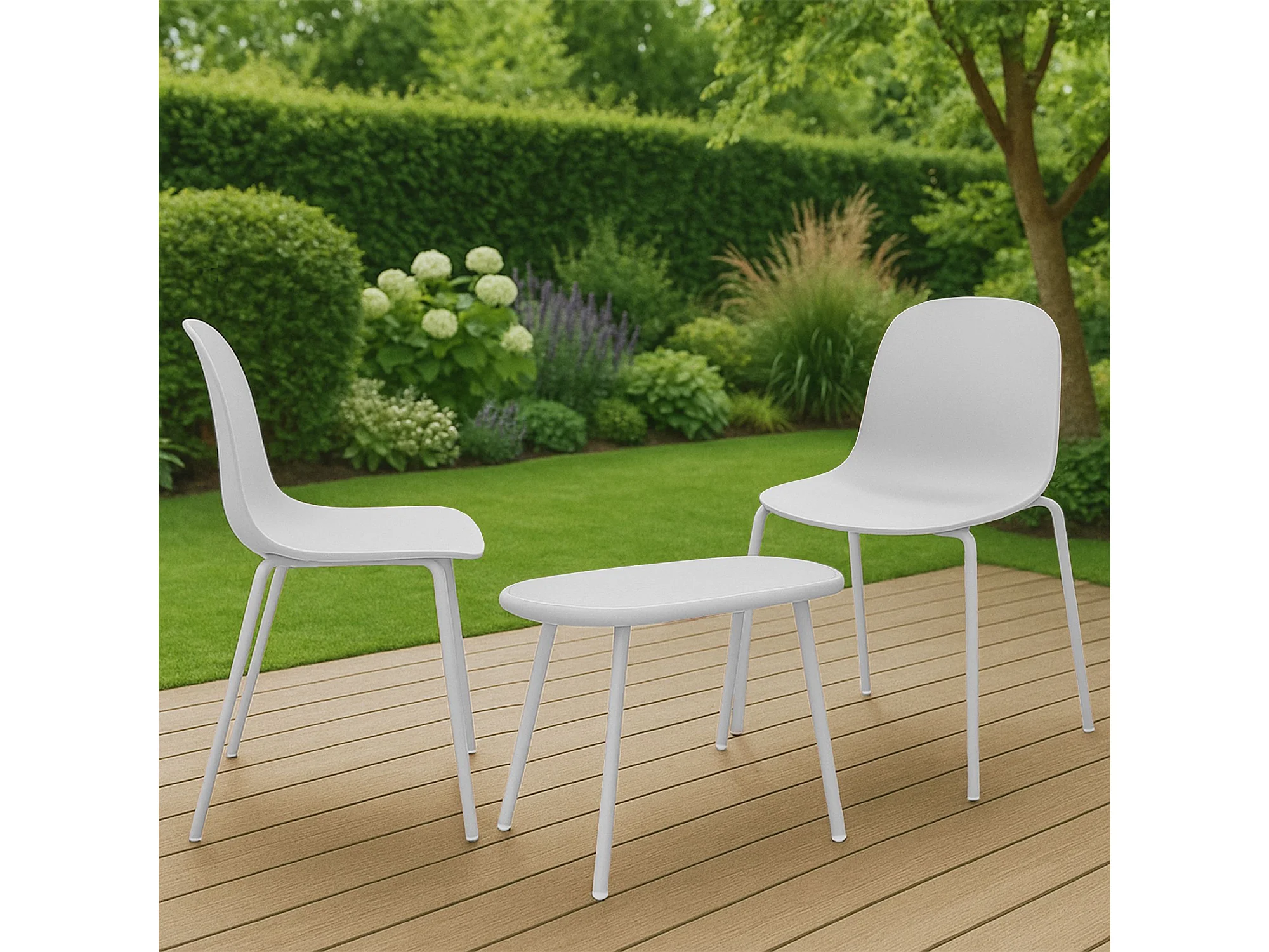 Table rectangulaire et 2 chaises de jardin plastique blanc Camille