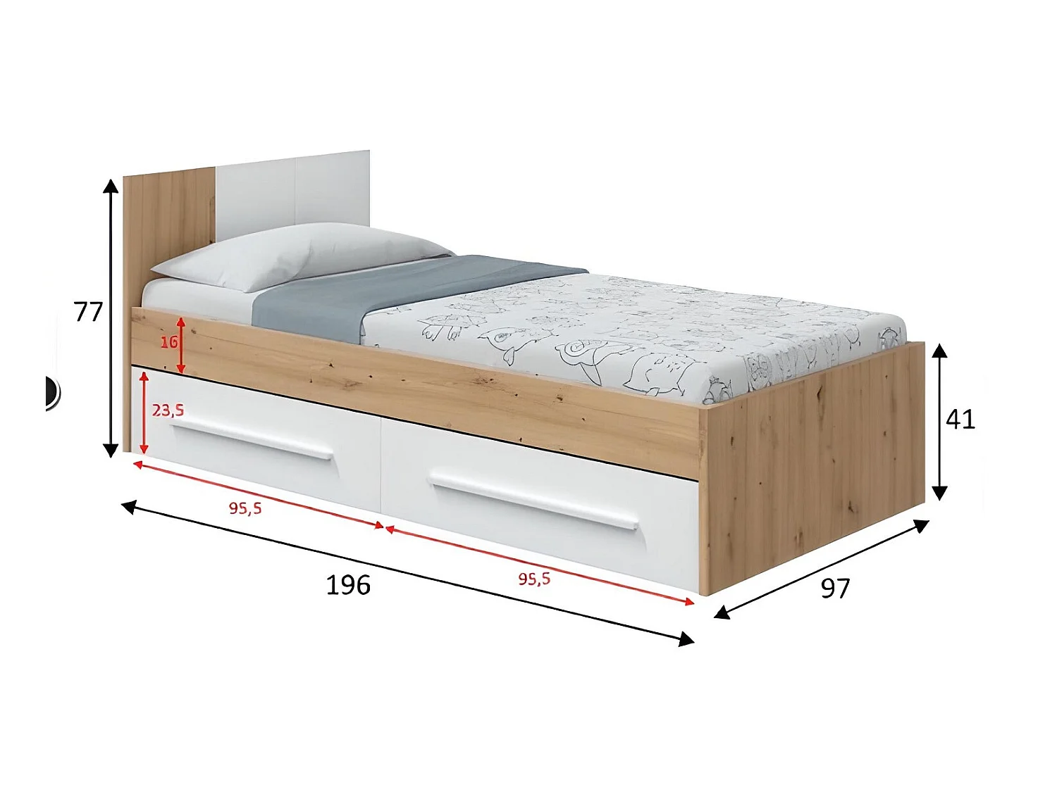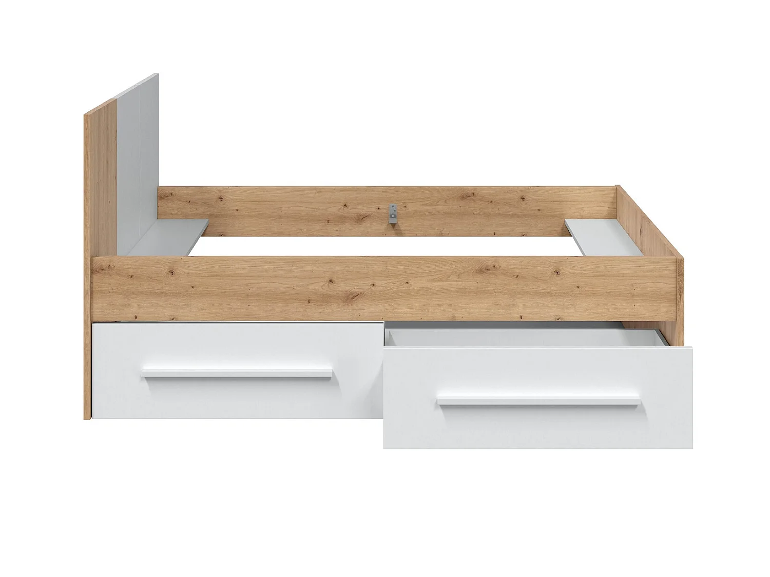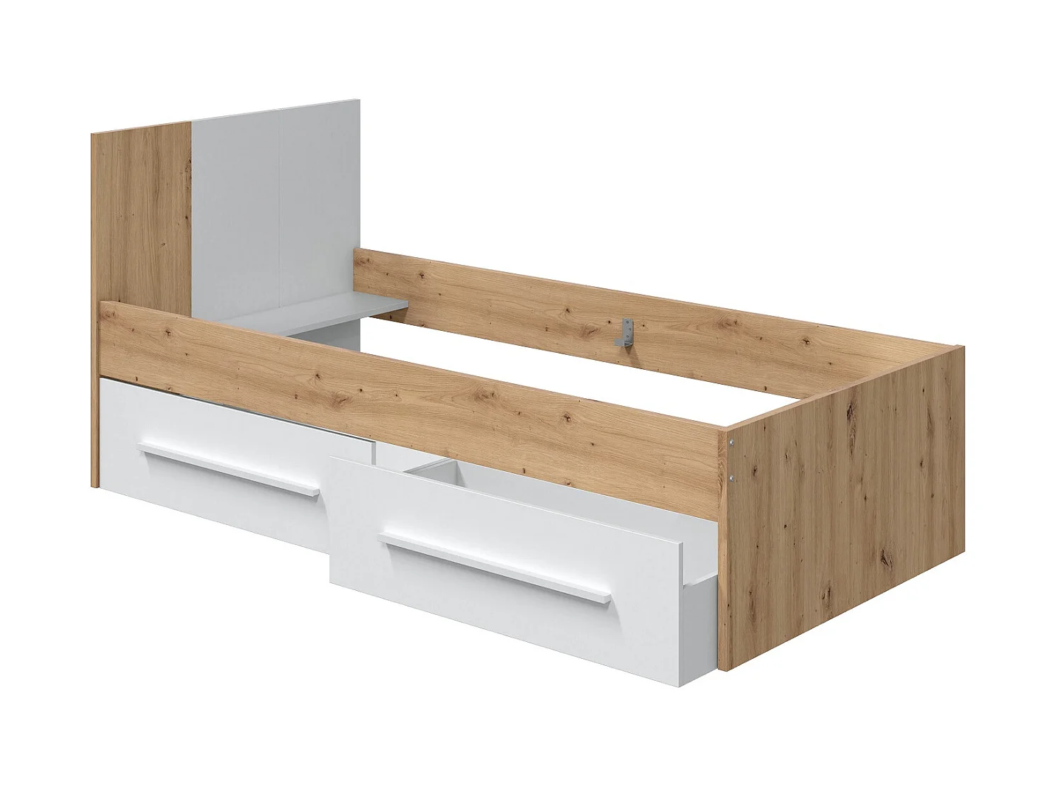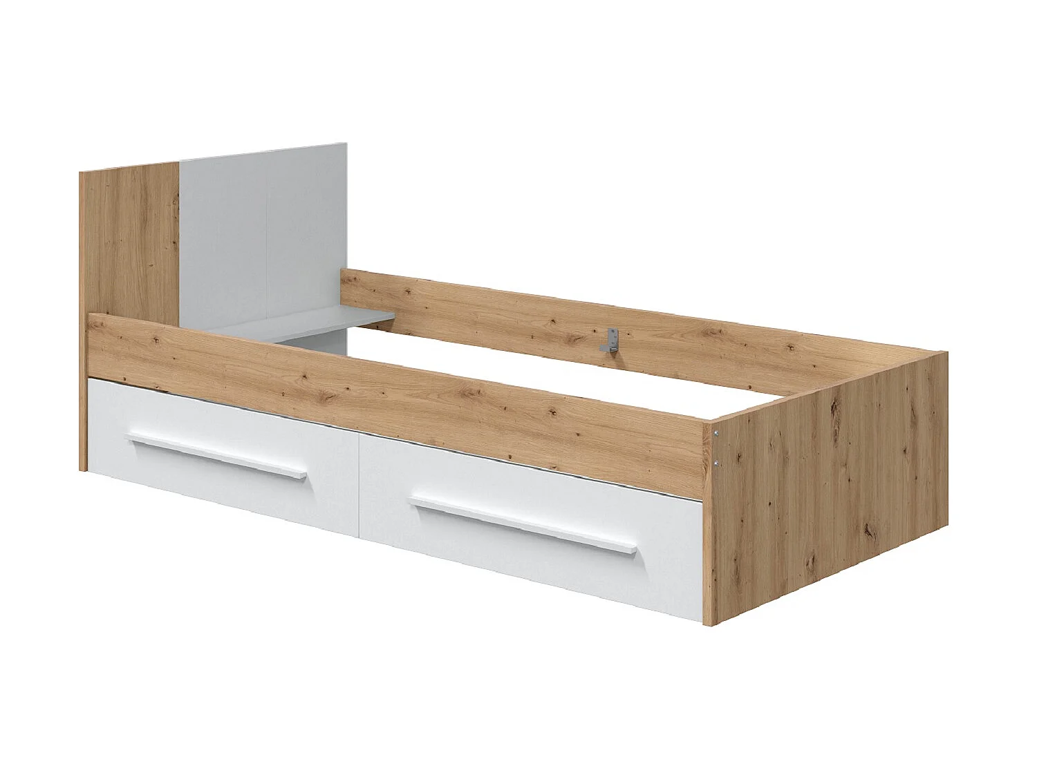 Ensemble de lit avec tête de lit et deux tiroirs en mélamine coloris blanc - Longueur 196 x Profondeur 97 x Hauteur 77 cm