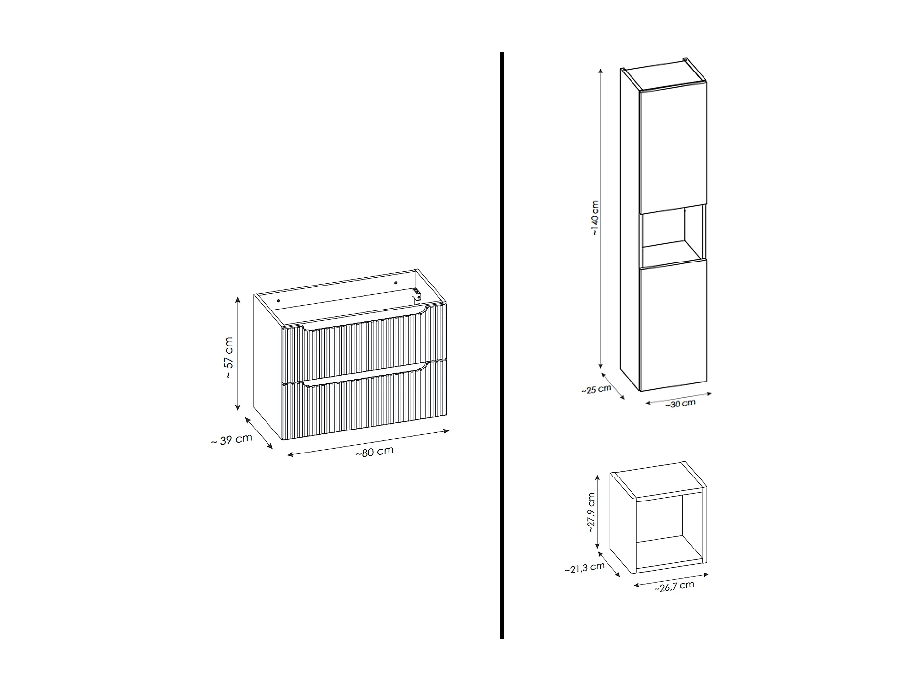 Ensemble de meuble de salle de bain - 80 cm - Noir/Oak - avec plan - avec colonne - 2 tiroirs - VOLTA Oak