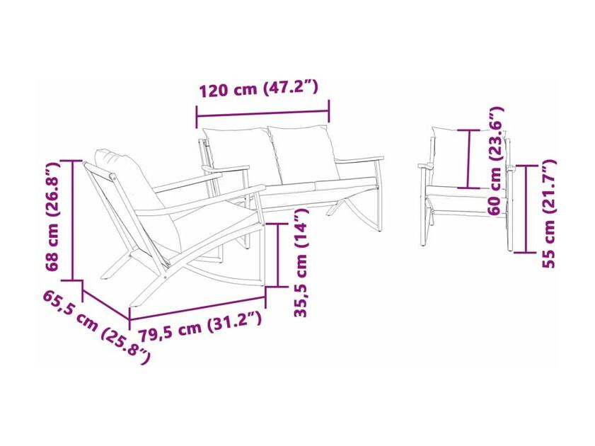 Ensemble de meubles de balcon avec coussins 3 pcs noir acier