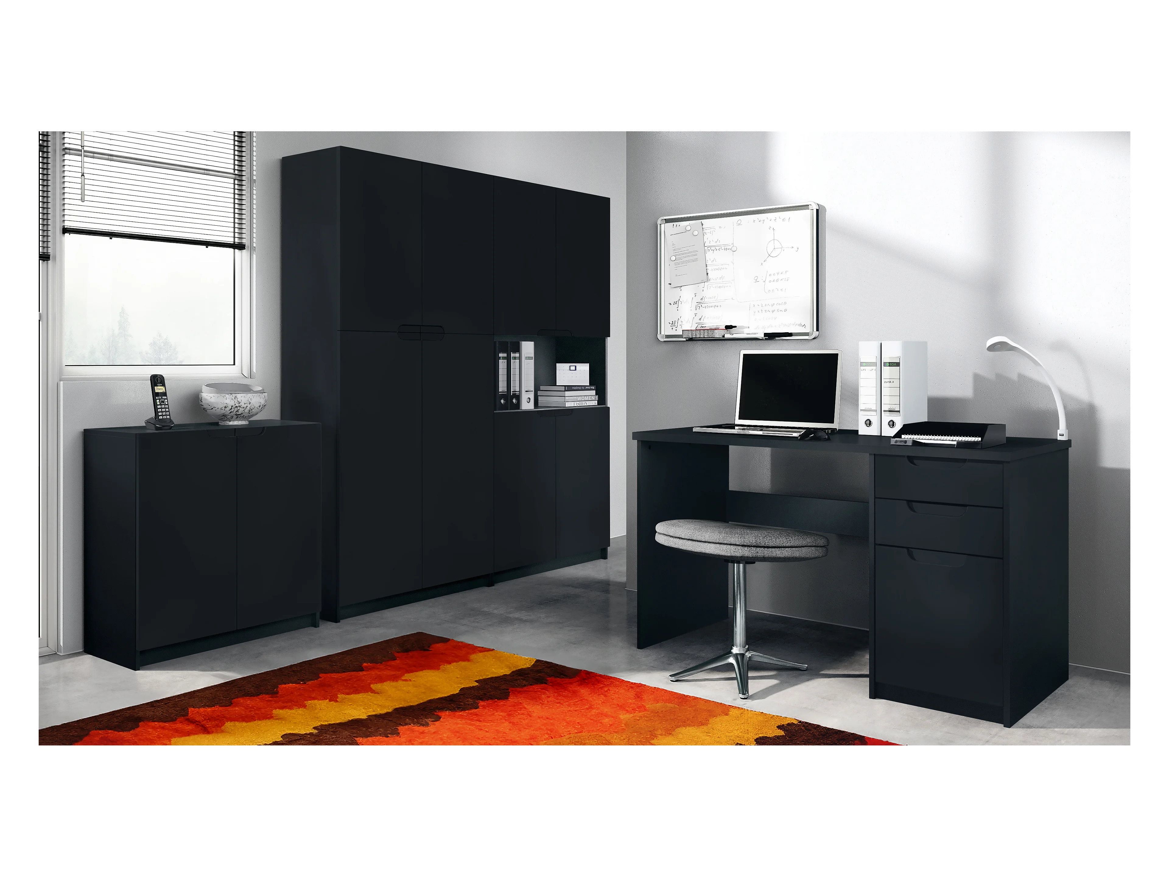 Ensemble de meubles de bureau Armoire Commode Rangement Logan, Corps en noir mat / Façades en noir mat
