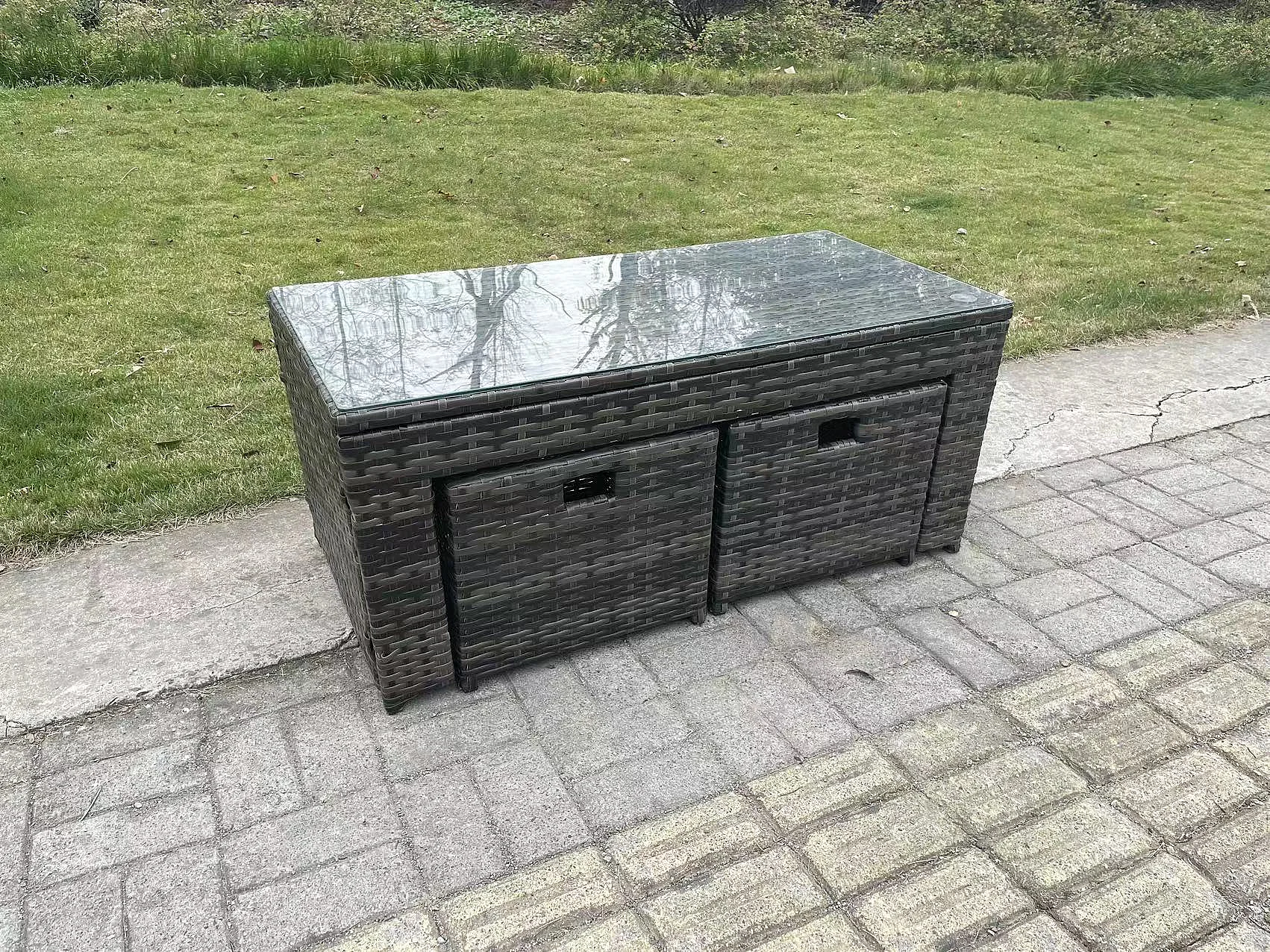 Ensemble de meubles de jardin ave canapé Table basse 2 Tabourets PE Rotin Mélange gris foncé