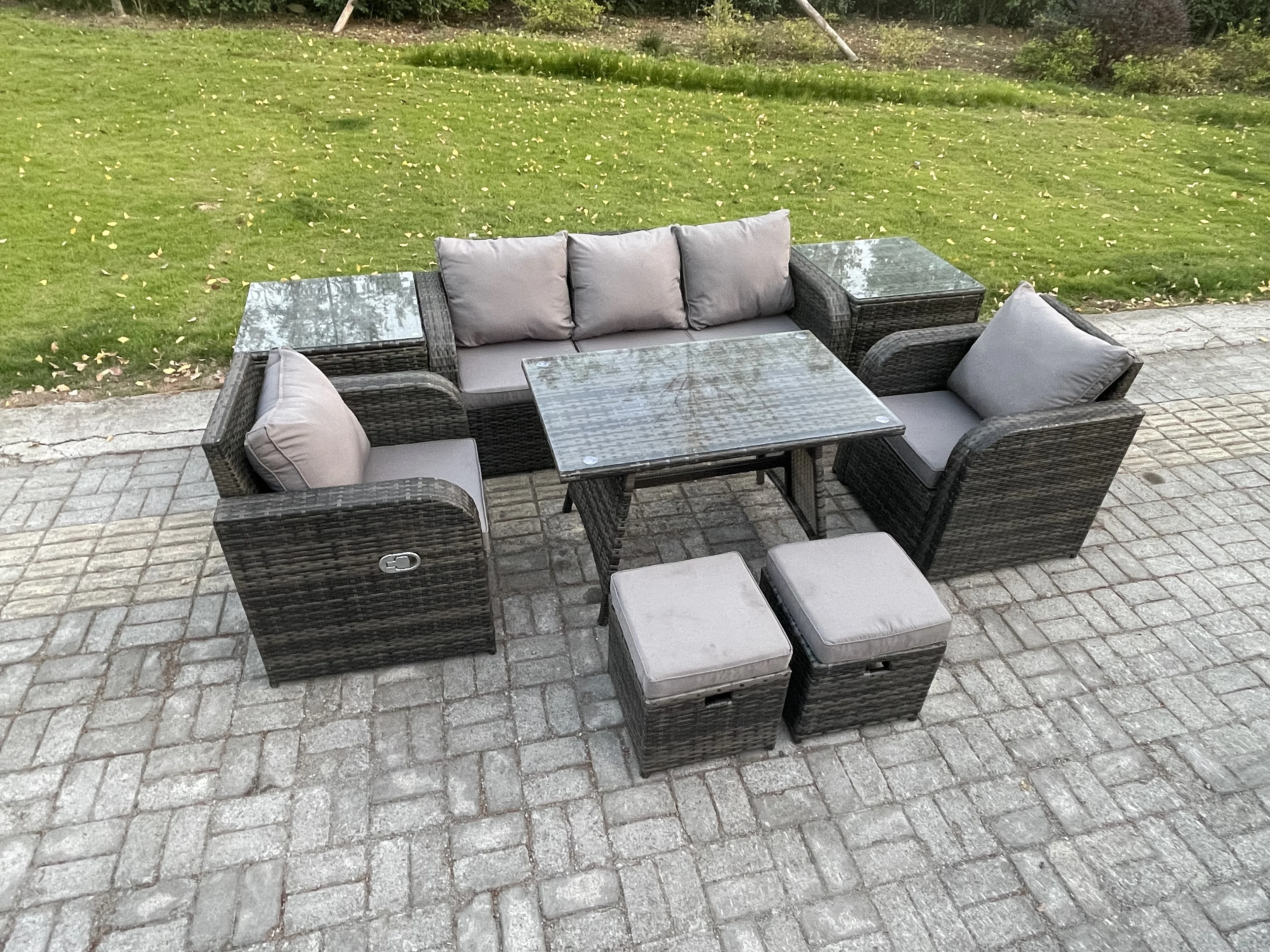 Ensemble de meubles de jardin en polyrotin 8 Pièces avec Table à manger rectangulaire 2 Petits tabourets 2 Tables d'appoint