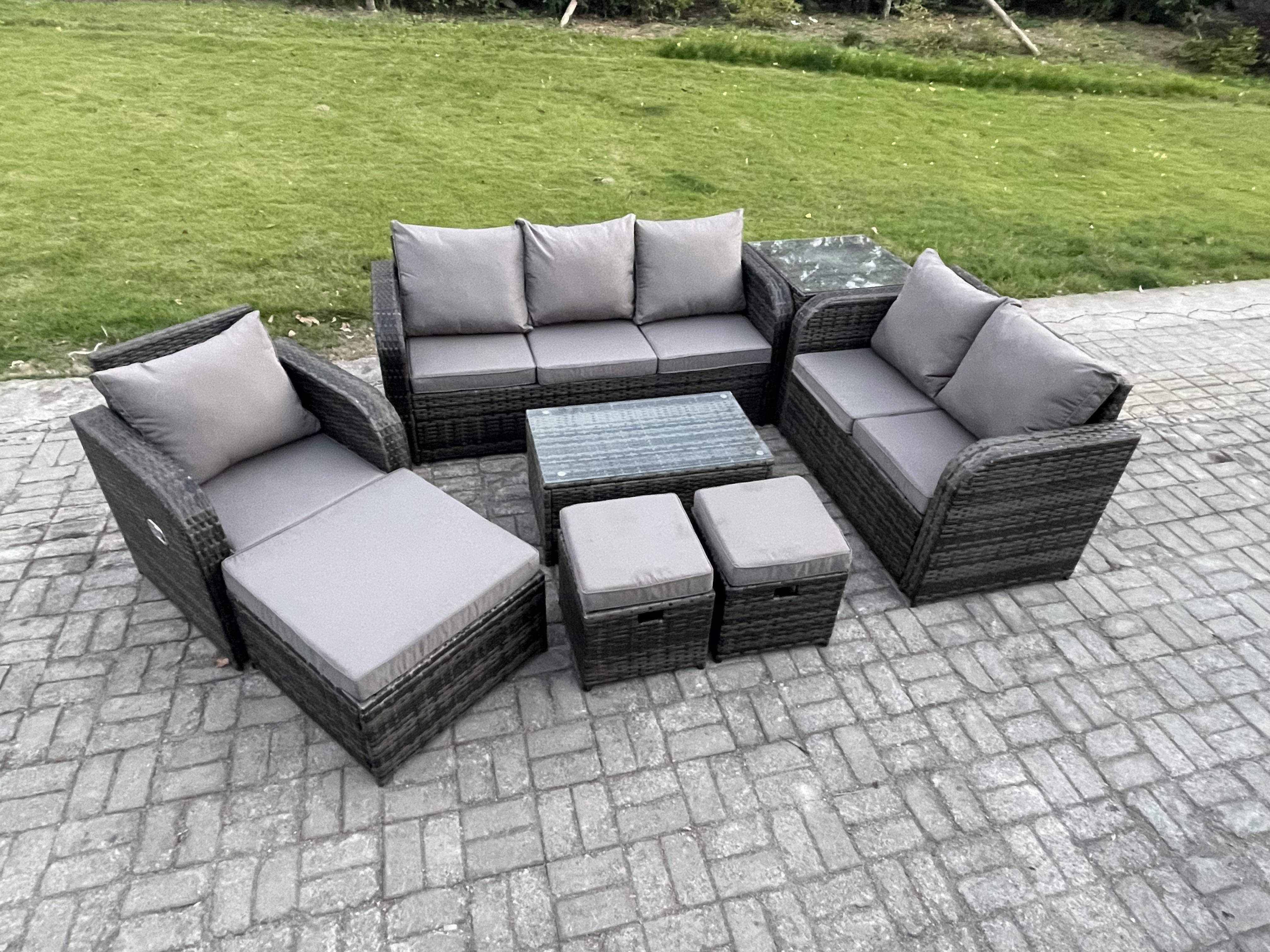 Ensemble de meubles de jardin en polyrotin 8 Pièces avec Table basse rectangulaire Canapé d'amour 3 Tabourets Table d'appoint