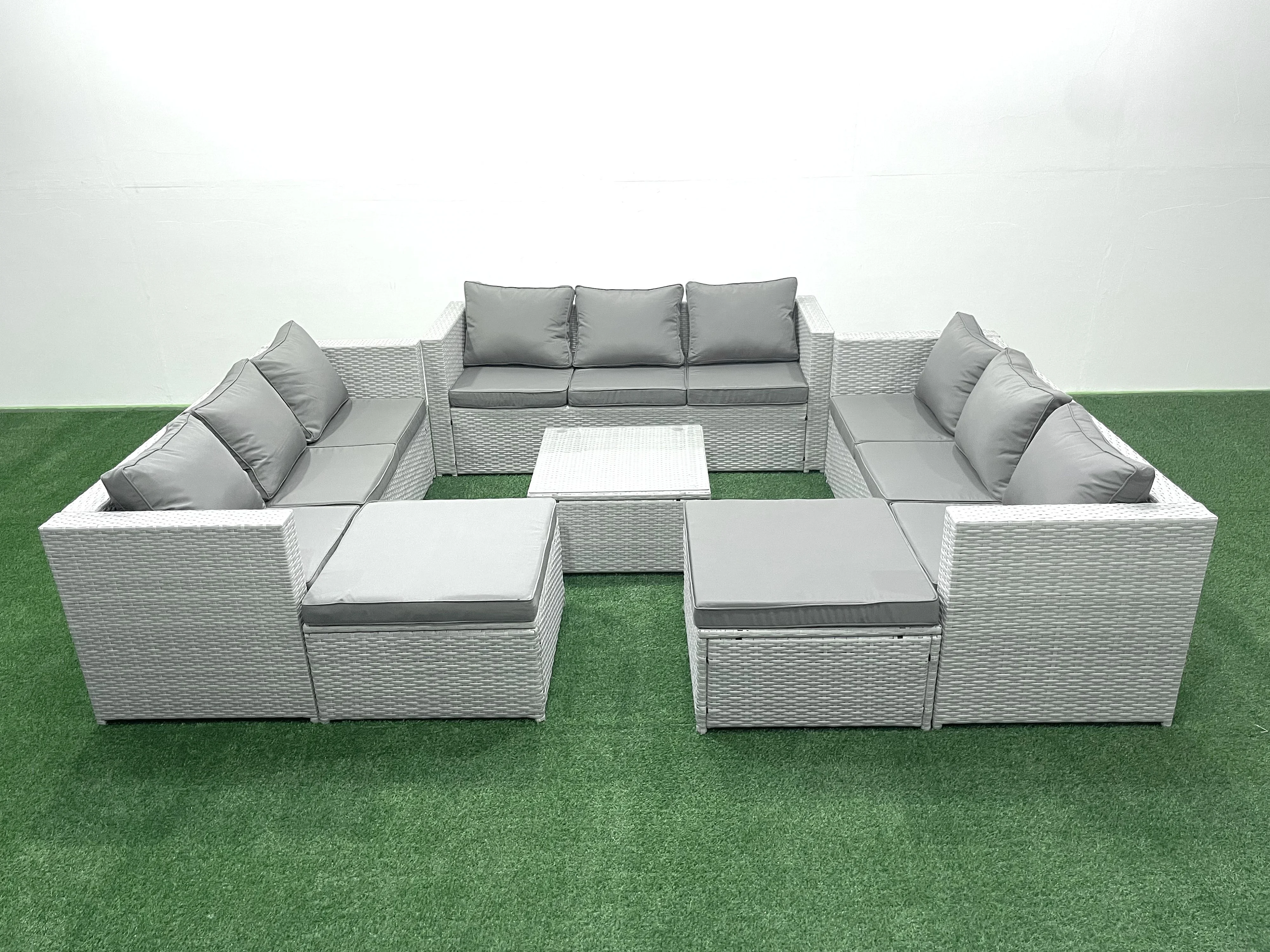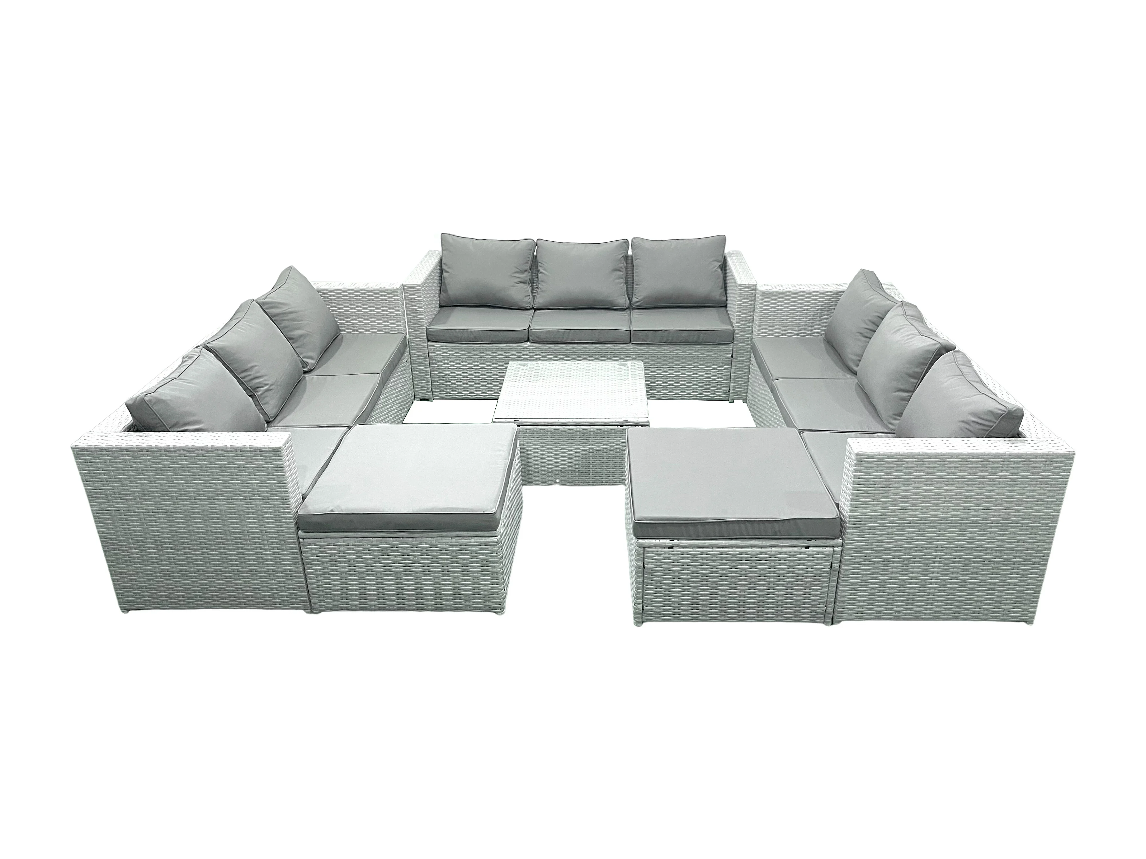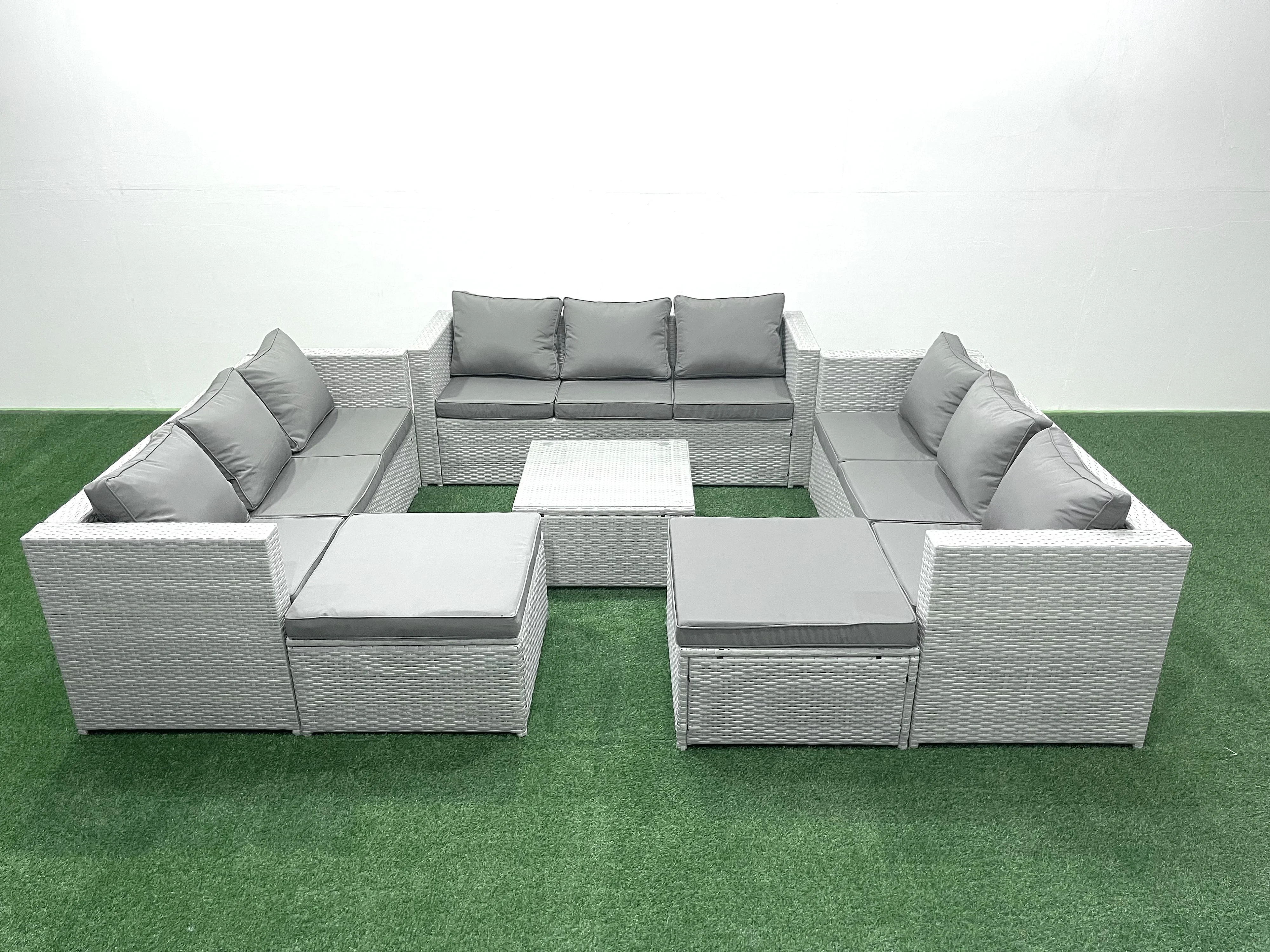 Ensemble de meubles de jardin en rotin 11 places avec Canapé 2 Grand tabourets Gris clair mixte
