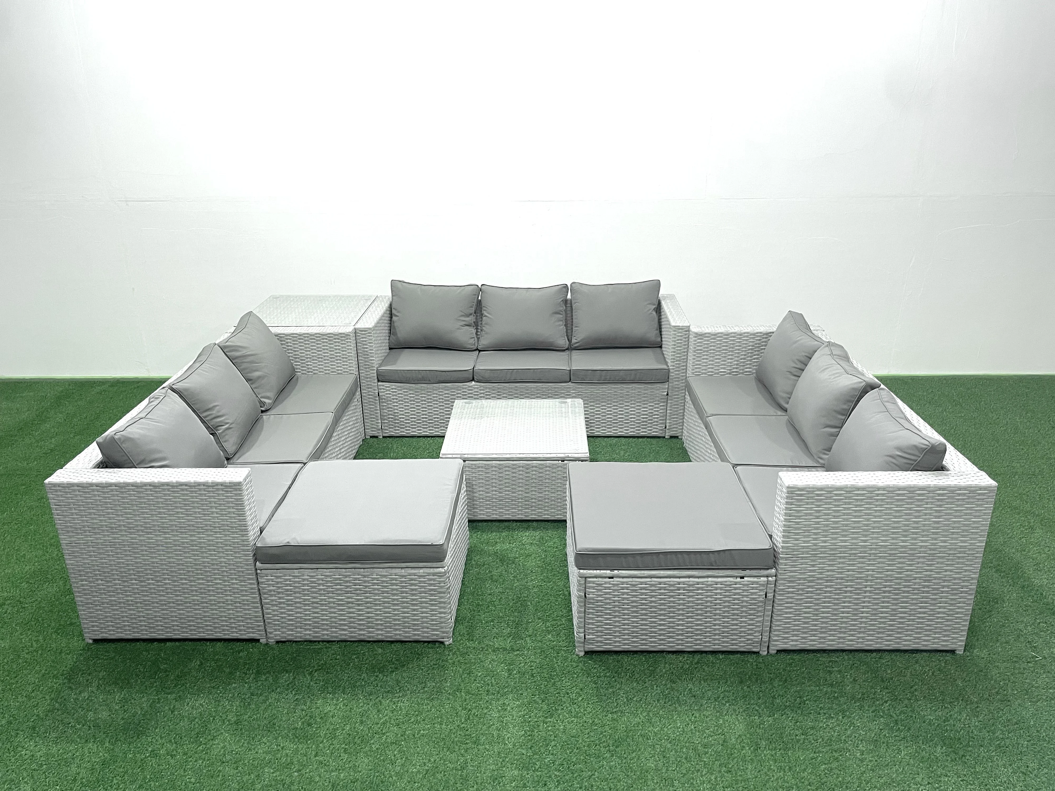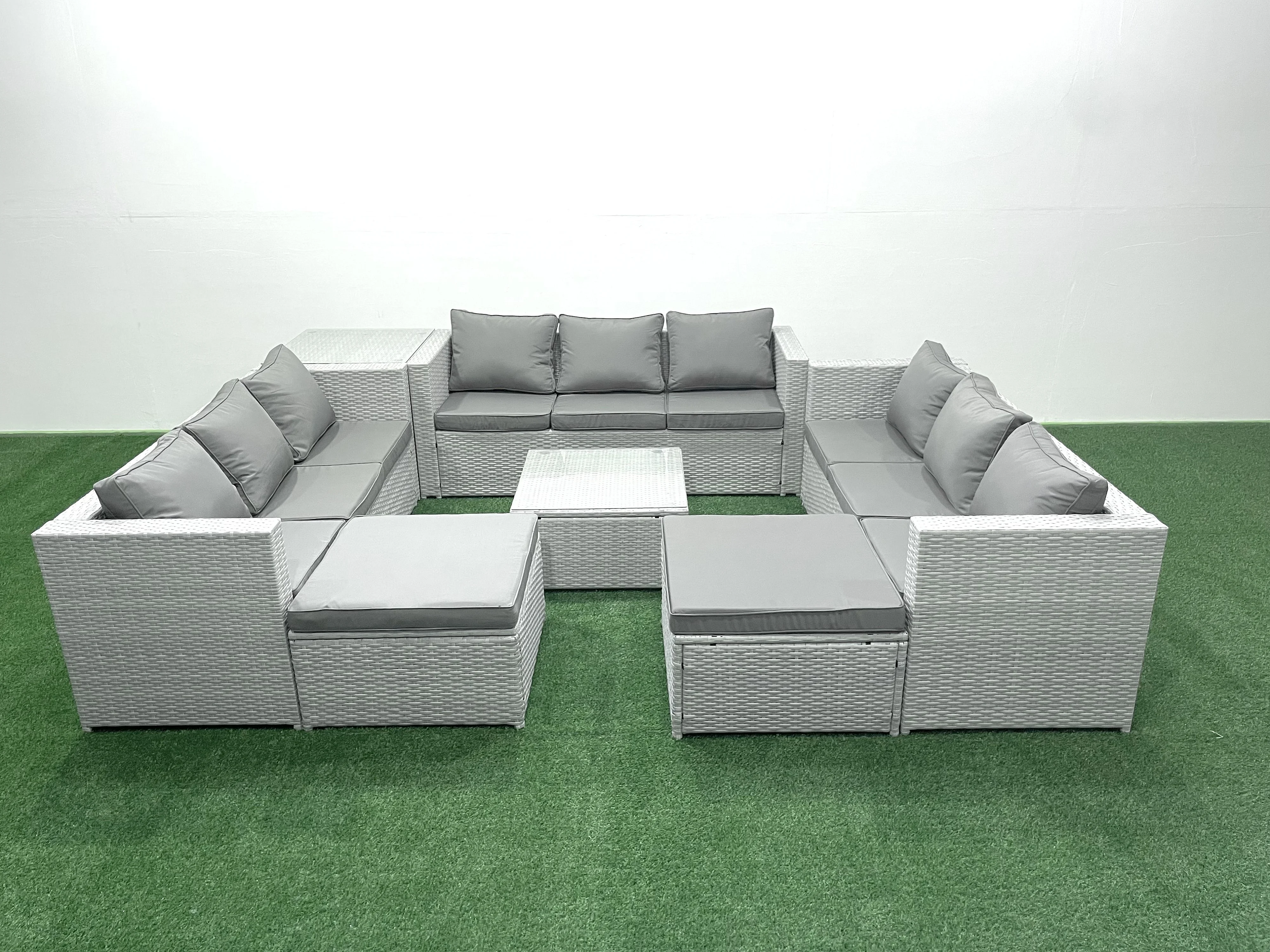 Ensemble de meubles de jardin en rotin 11 places avec Canapé 2 Grand tabourets Table d'appoint Gris clair mixte