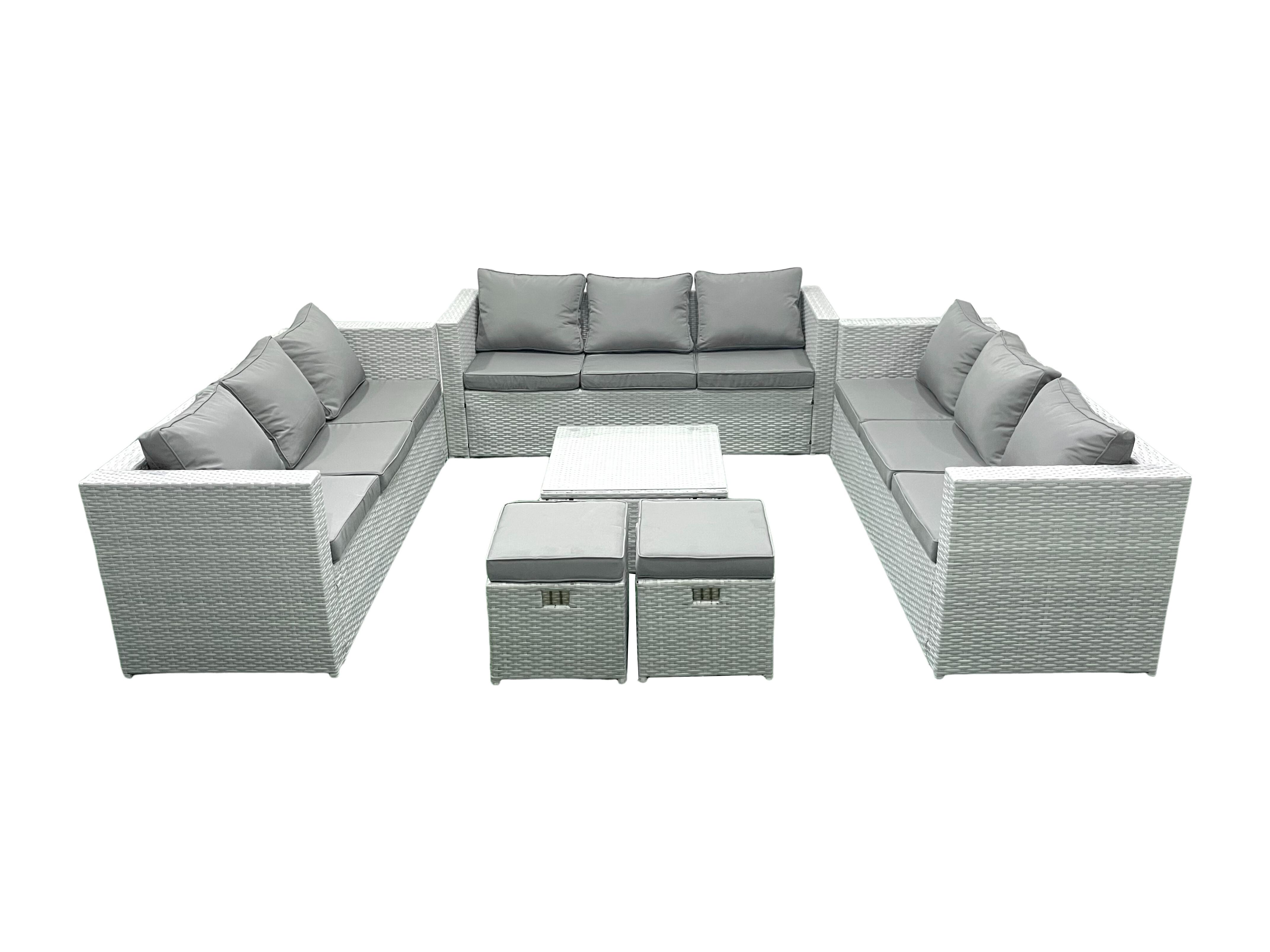 Ensemble de meubles de jardin en rotin 11 places avec Canapé 2 Petits tabourets Gris clair mixte