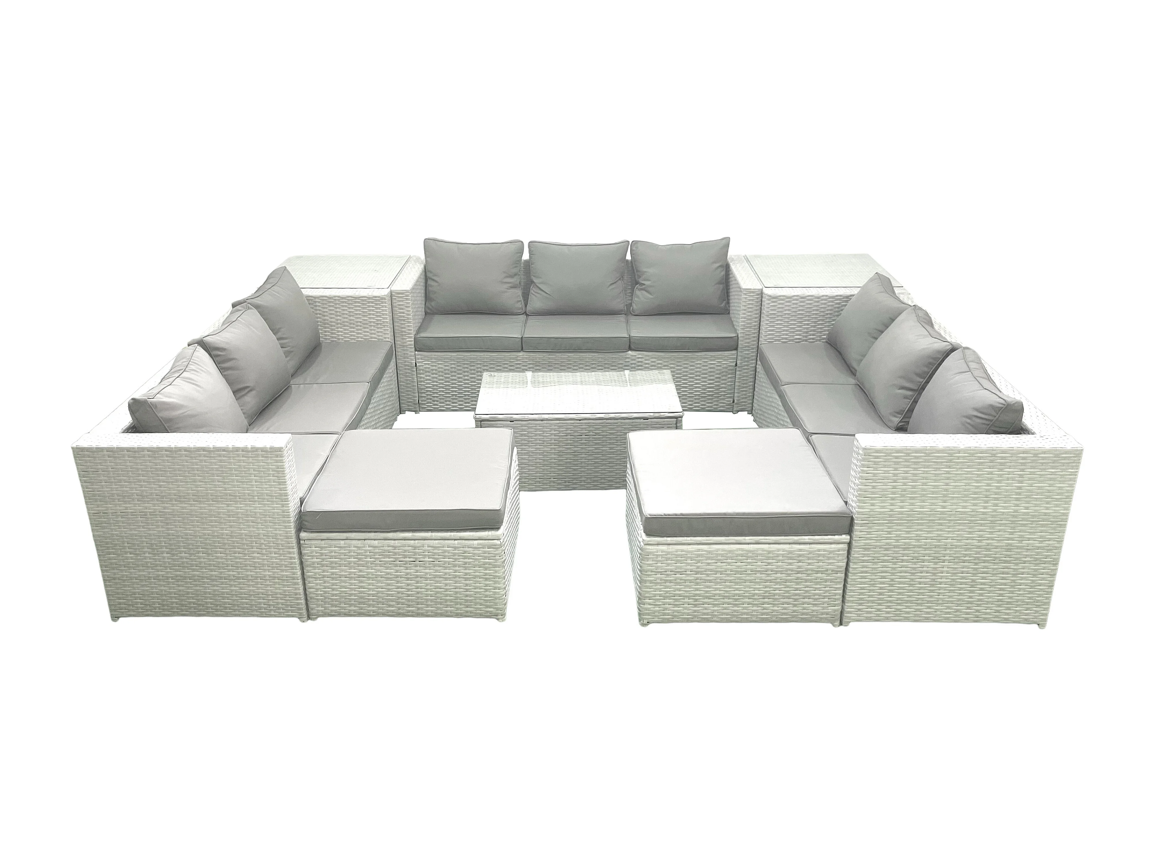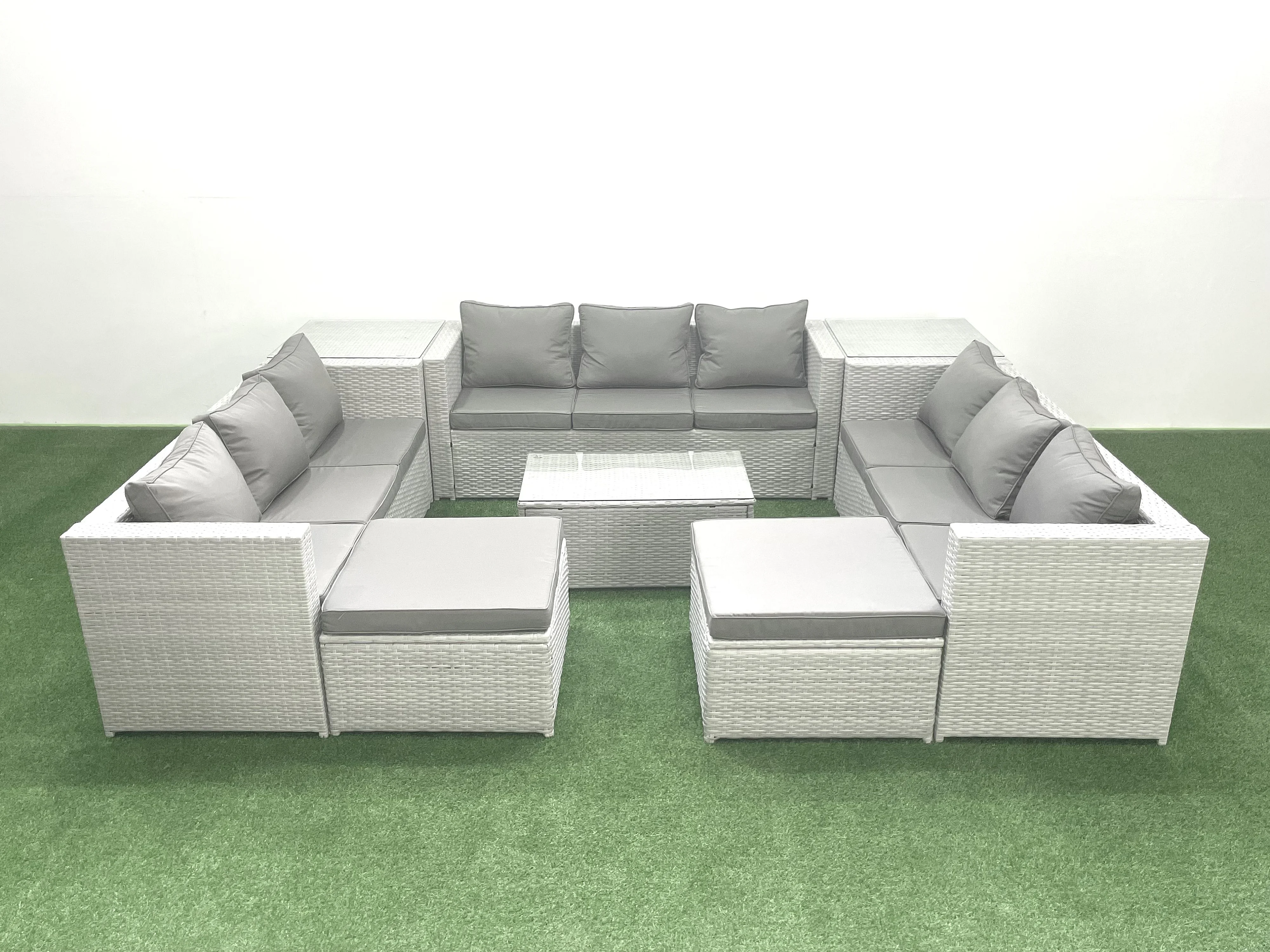 Ensemble de meubles de jardin en rotin 11 places avec Canapé de jardin Table basse 2 Grand tabourets 2 Tables d'appoint Gris clair mixte