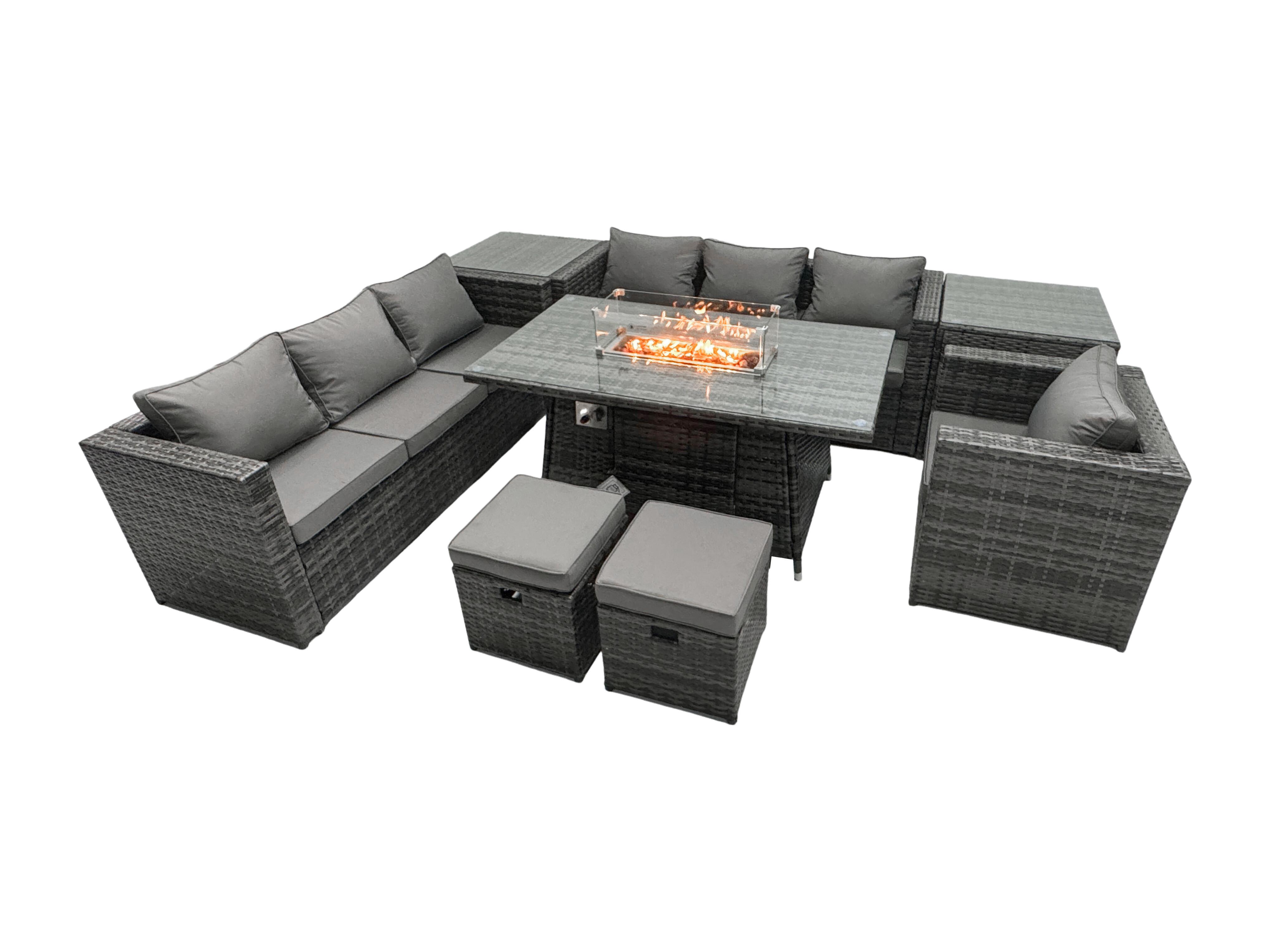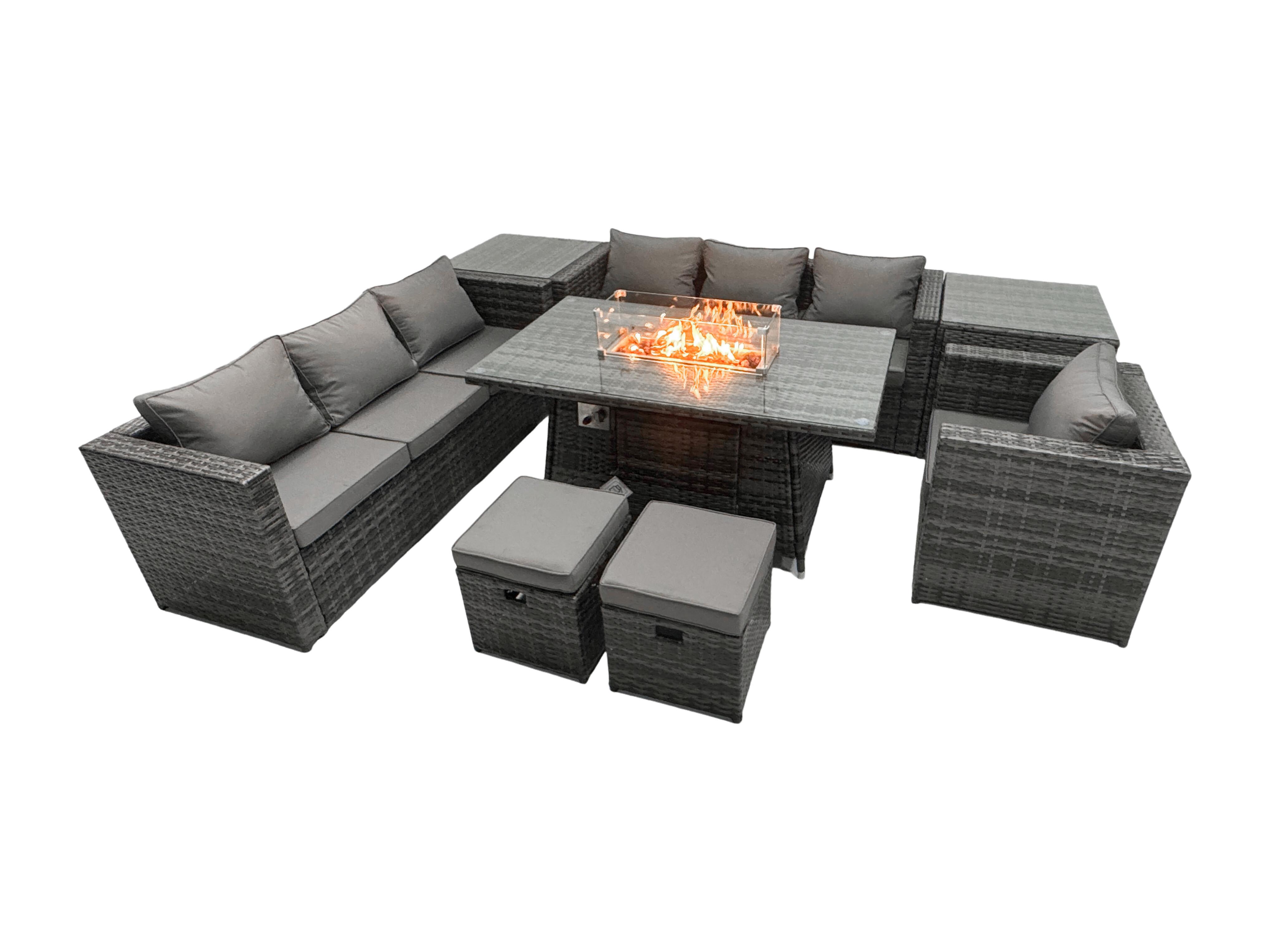 Ensemble de meubles de jardin en rotin ave Table de foyer à gaz 6 places Ensemble de canapés avec 2 Tables d'appoint 2 Petits tabourets