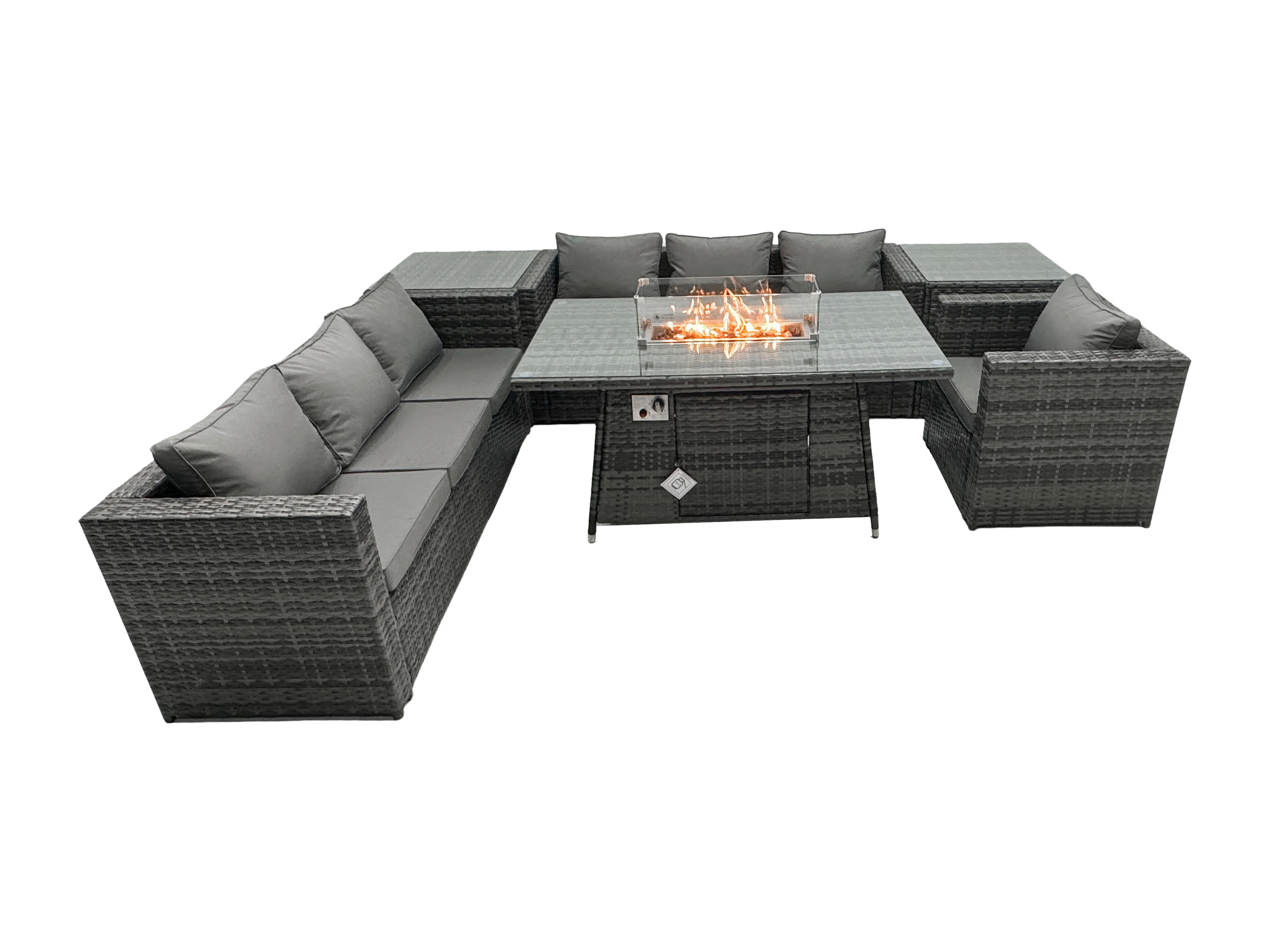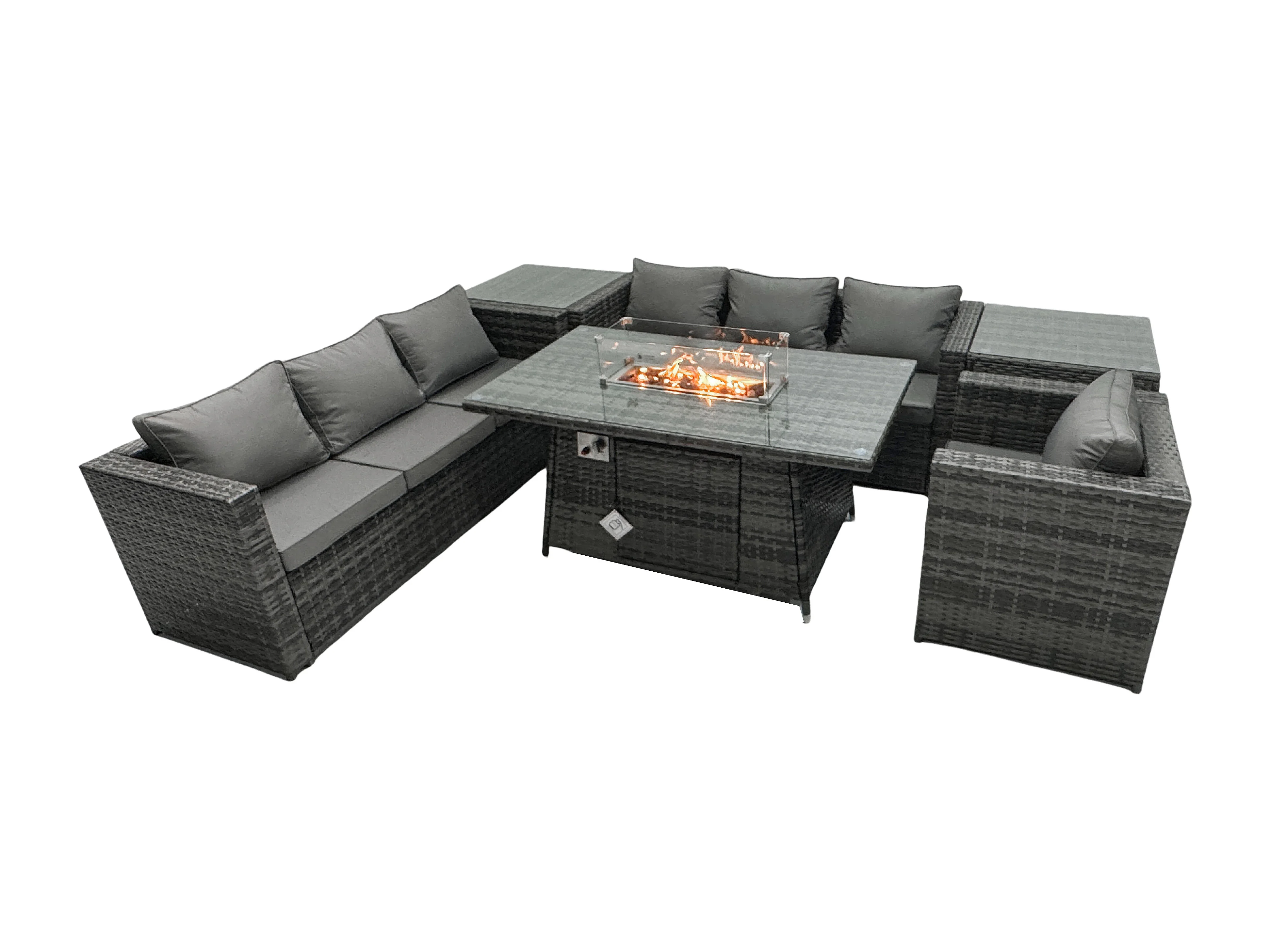 Ensemble de meubles de jardin en rotin ave Table de foyer à gaz 7 places Ensemble de canapés avec 2 Tables d'appoint