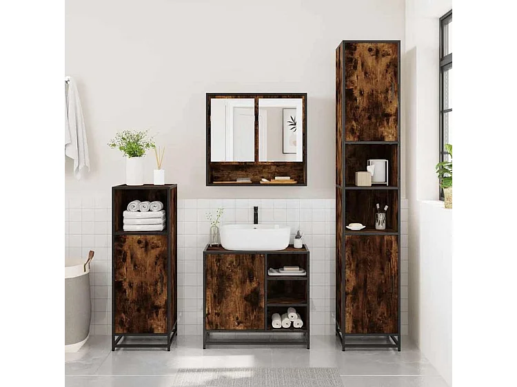 Ensemble de meubles de salle de bain 2 pcs Chêne fumé