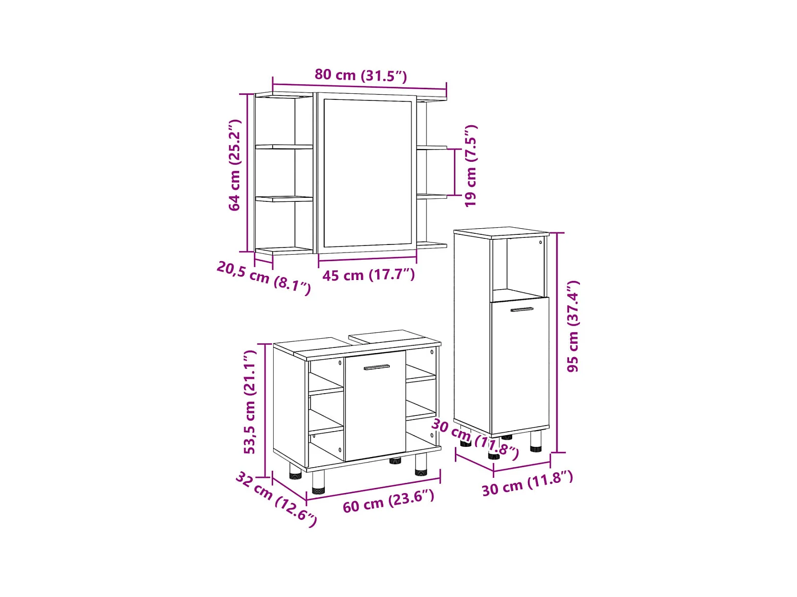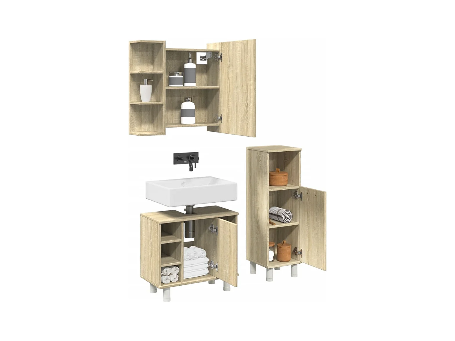 Ensemble de meubles de salle de bain 3 pcs chêne sonoma