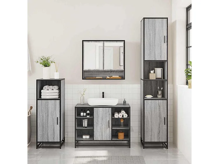 Ensemble de meubles de salle de bain 3 pcs Sonoma gris