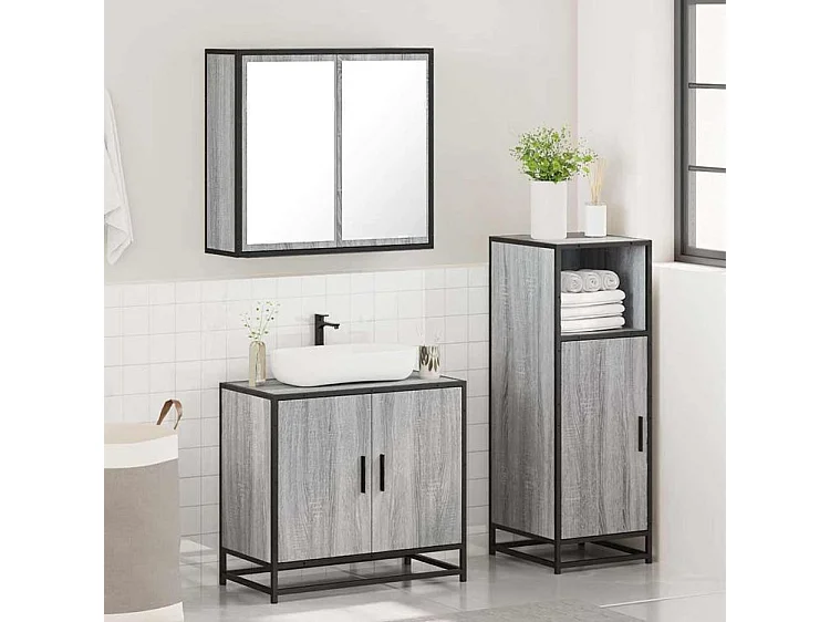 Ensemble de meubles de salle de bain 3 pcs Sonoma gris
