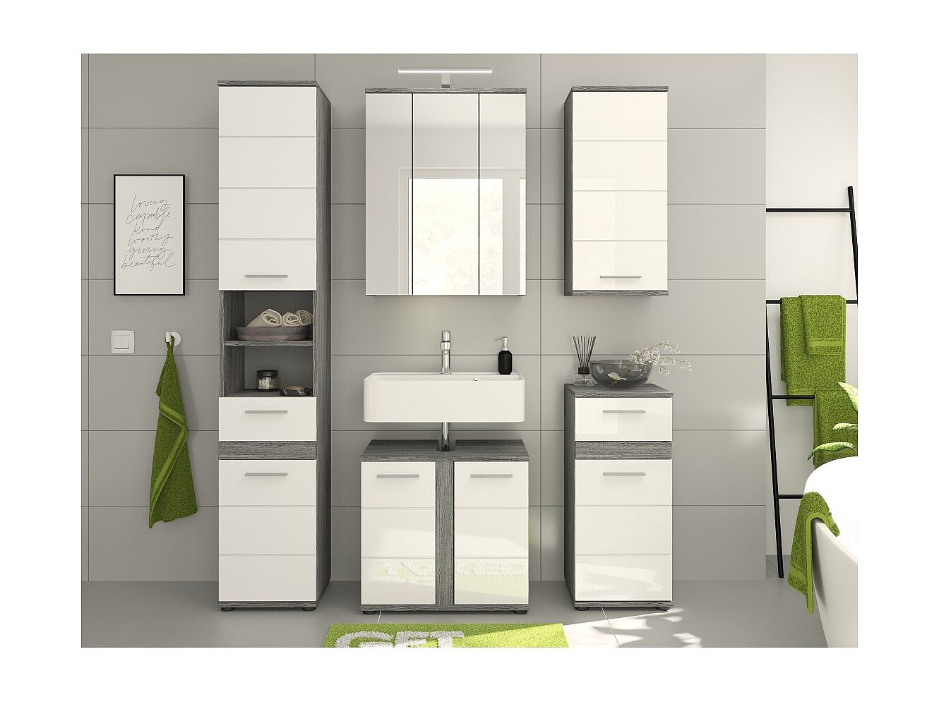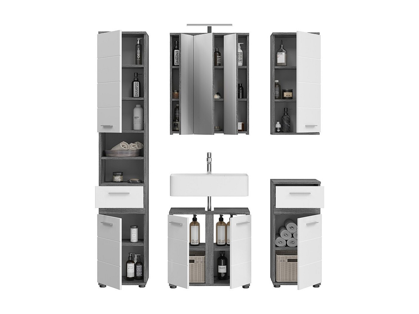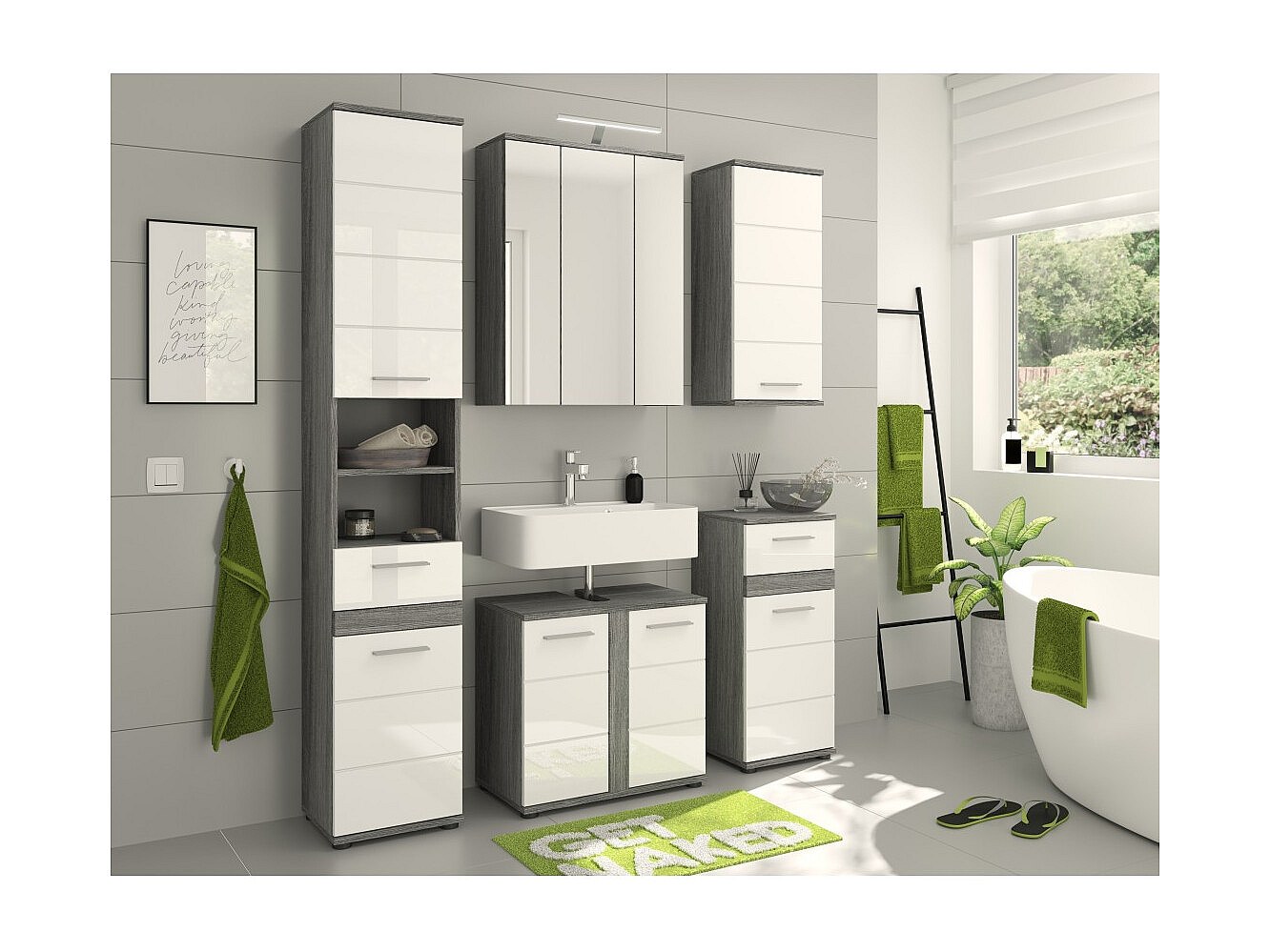 Ensemble de meubles de salle de bain WILLIAM – Gris foncé et blanc – 164x191x34 cm – Avec LED