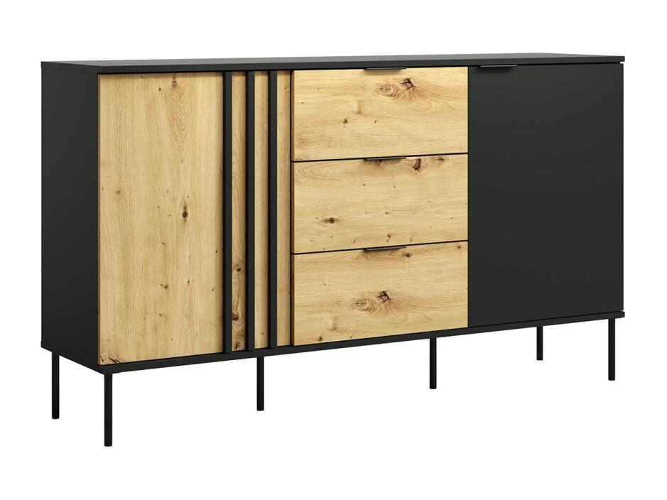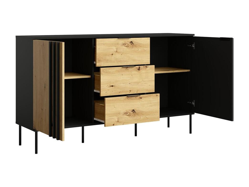 Ensemble de meubles design IZO – Vitrine + Buffets + Table basse + Meuble TV – Noir onyx & Chêne clair